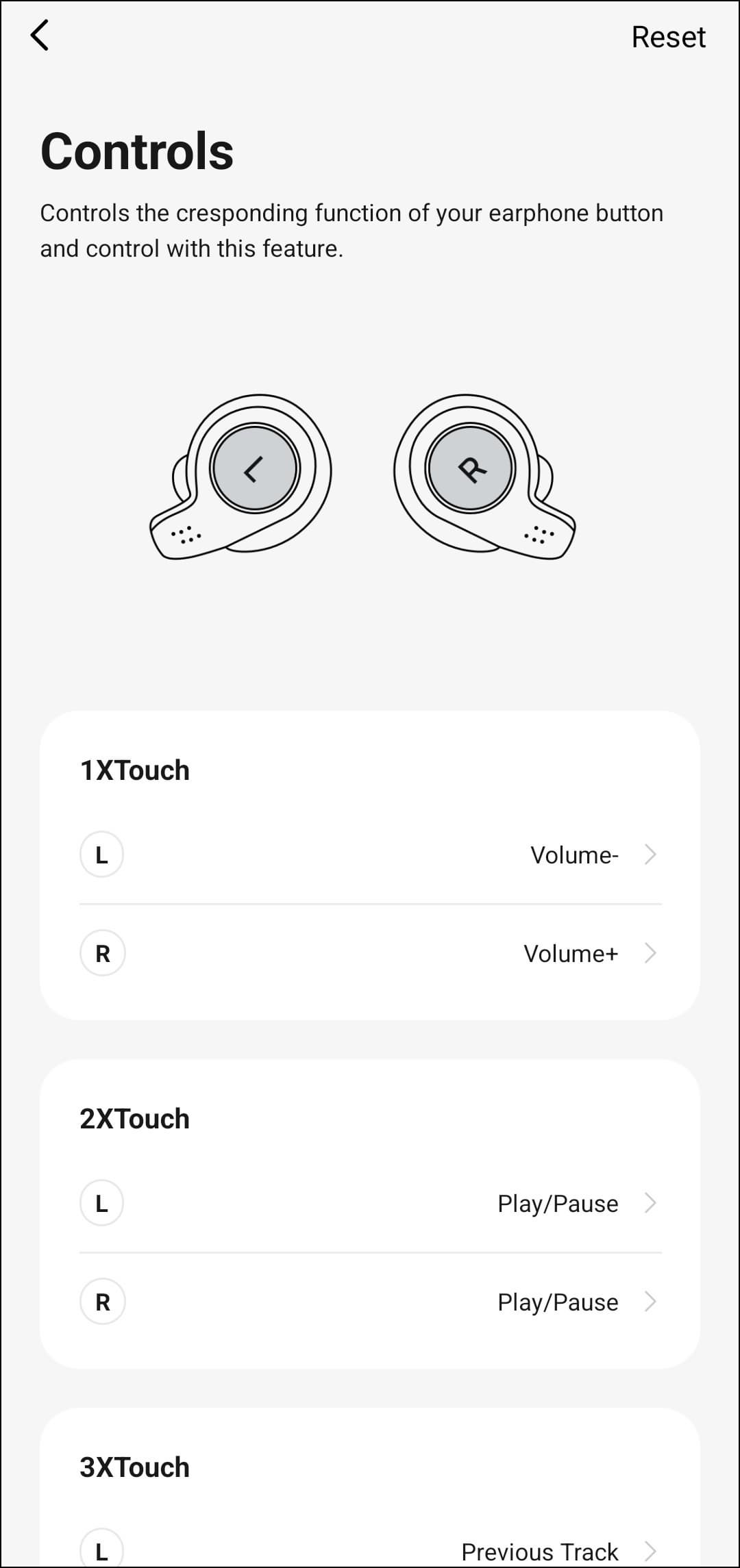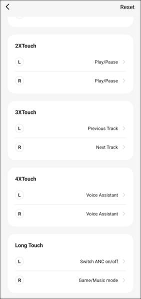 При этом управление еще и гибко настраивается из приложения: система умеет различать правый и левый наушники, для каждого типа касания есть крайне обширный список возможных действий.