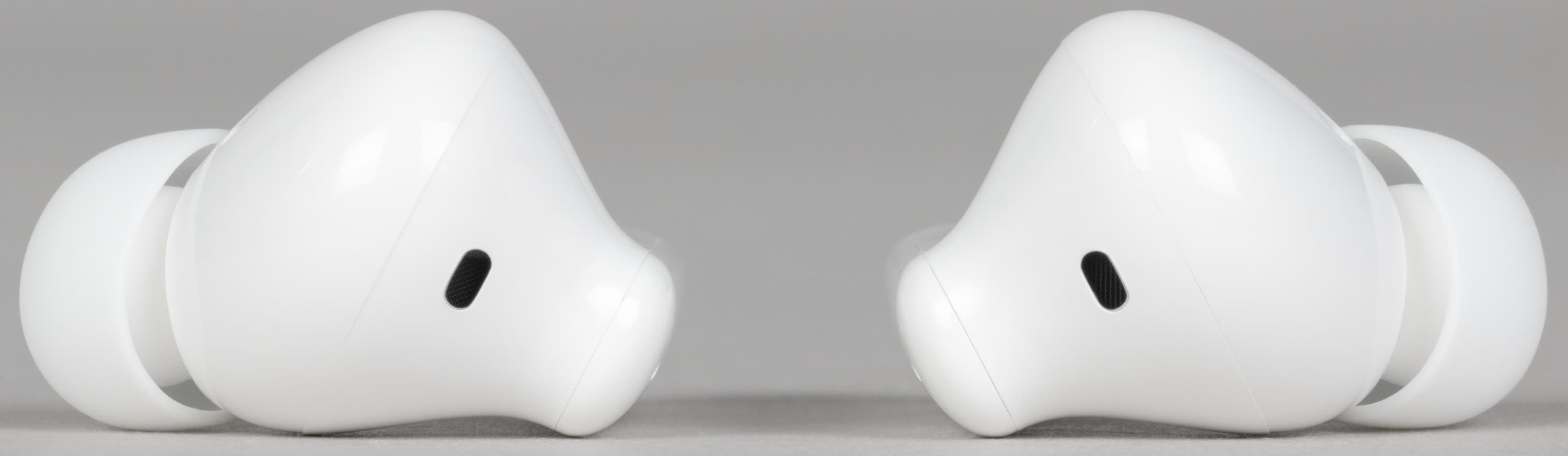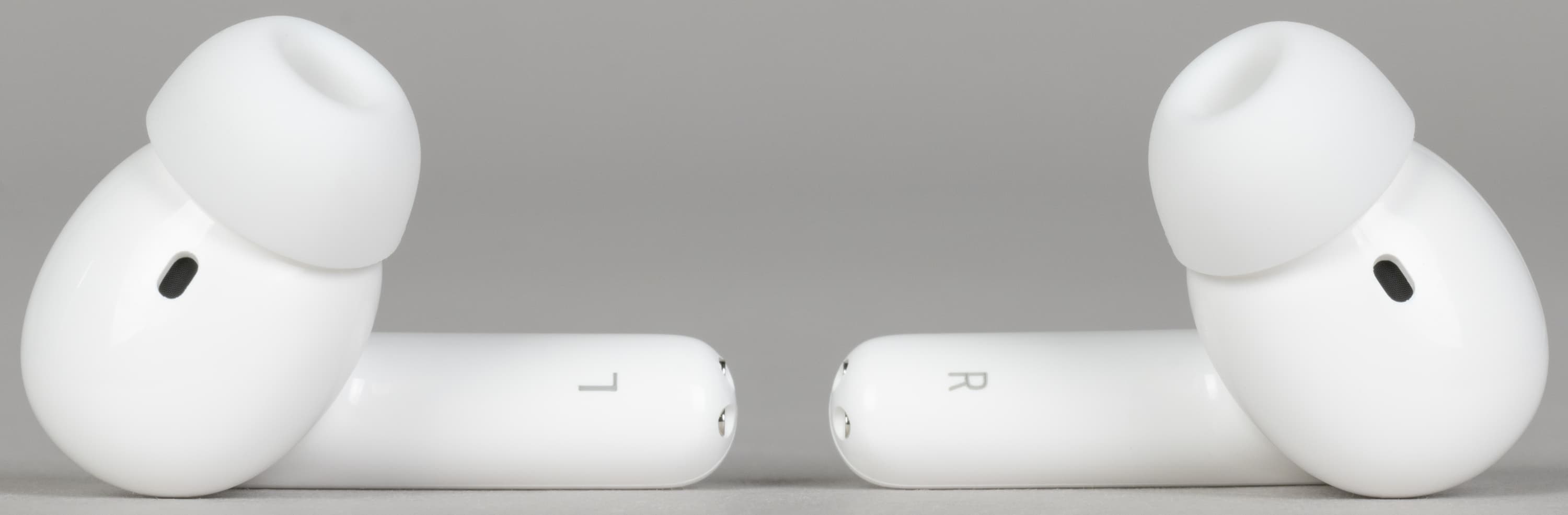 Производитель анонсировал «улучшенное качество звука при разговорах» благодаря работе массива из четырех микрофонов с системой шумоподавления. Однако выше мы уже отмечали, что основные микрофоны для голосовой связи размещены довольно спорно: на внешней стороне ножек, да еще и на значительном расстоянии от их торцов. Посмотрим, как эта схема проявит себя на практике.