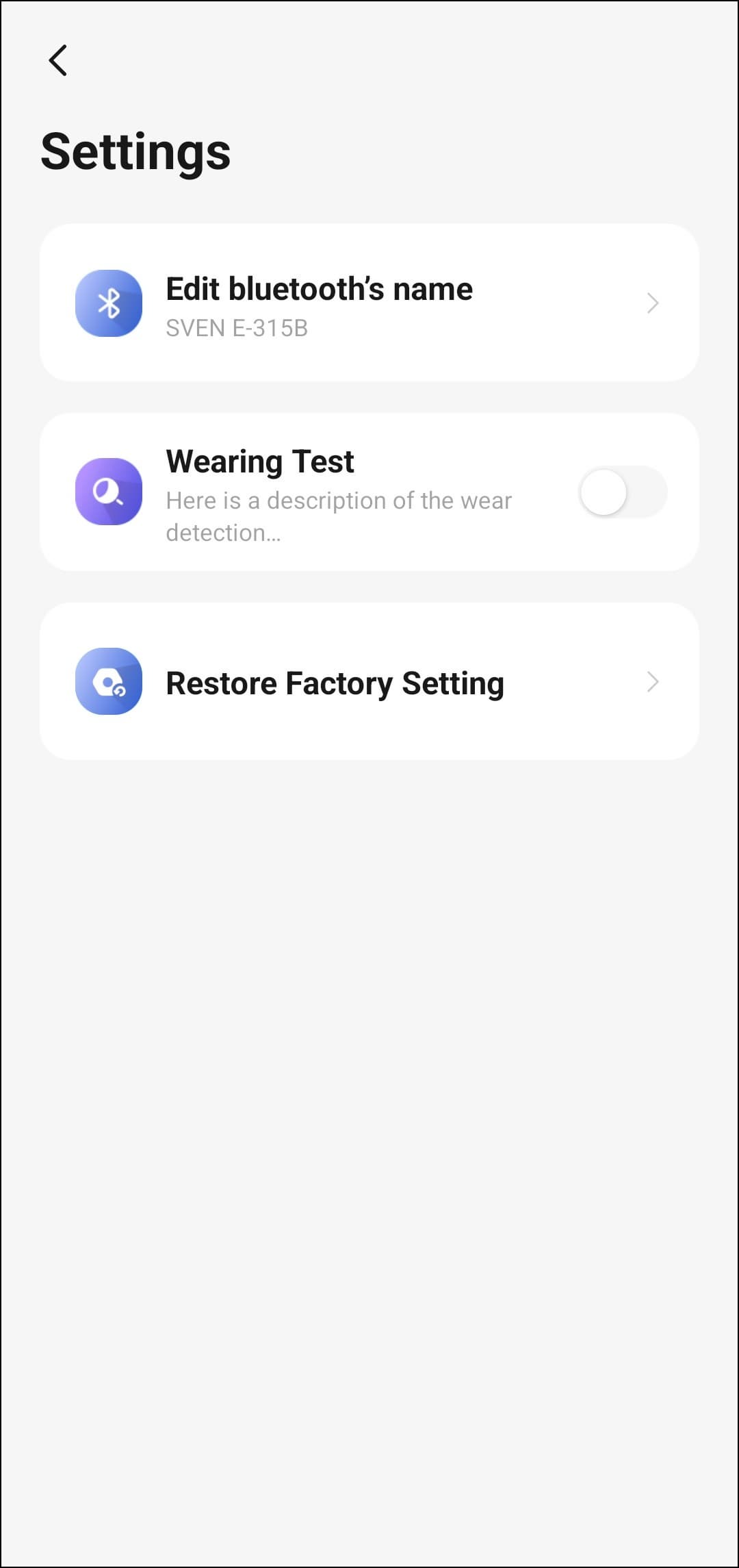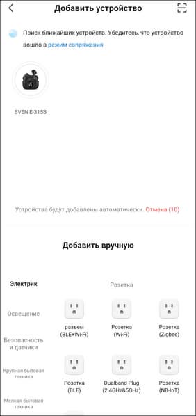 Для настройки Sven E-310B/E-315B используется знакомое многим универсальное приложение для умного дома — Smart Life (Tuya), доступное для Android и iOS. Создатели гарнитуры решили не изобретать велосипед, а воспользоваться готовым и проверенным решением — и это, безусловно, правильный шаг. Такой подход позволил сразу реализовать пусть и не идеальную, но вполне рабочую систему. Впрочем, пространство для улучшений еще очень велико. Начать можно хотя бы с перевода на русский язык: само приложение давно локализовано, а вот интерфейс на странице наушников пока полностью на английском. Голосовые сообщения от гарнитуры, к слову, тоже озвучены исключительно на английском.