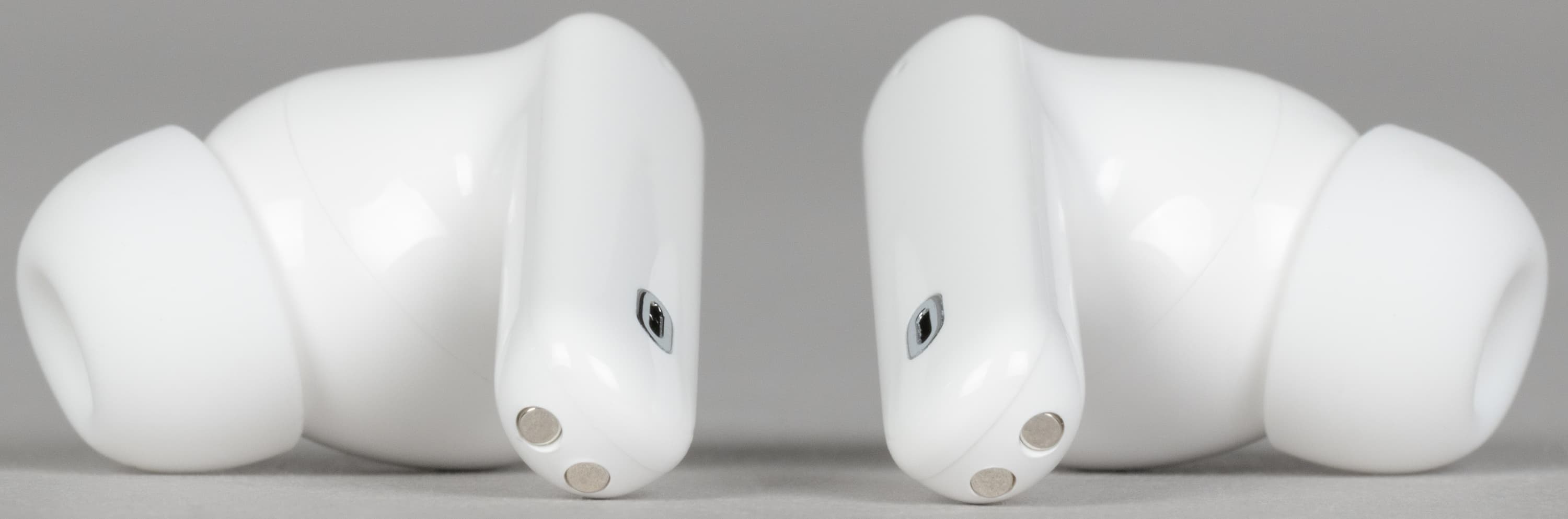 Сенсорные зоны расположены в верхней части ножек. Все касания, включая многократные, регистрируются корректно. Задержка между тапами чуть больше средней — к этому нужно немного привыкнуть. Помогает звуковой сигнал в наушниках: он сопровождает каждое касание, позволяя сразу понять, что все сработало как надо.