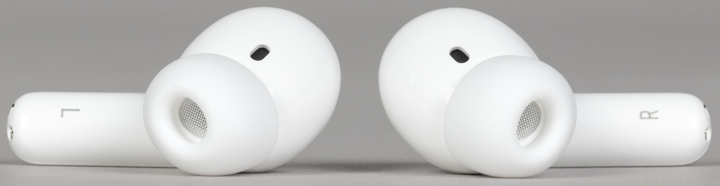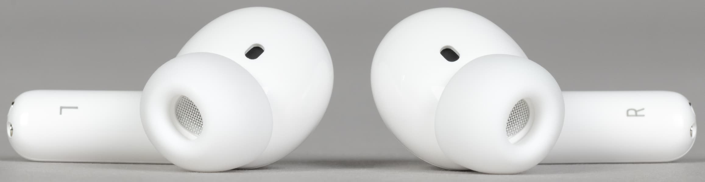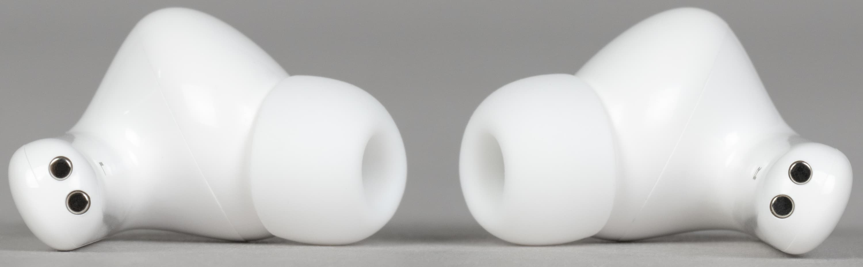 Звуковод имеет среднюю длину и размещен чуть под углом — он явно не рассчитан на глубокое проникновение в ушной проход. Это значит, что лишнего дискомфорта он не вызовет, но и дополнительной фиксации наушникам не обеспечит.