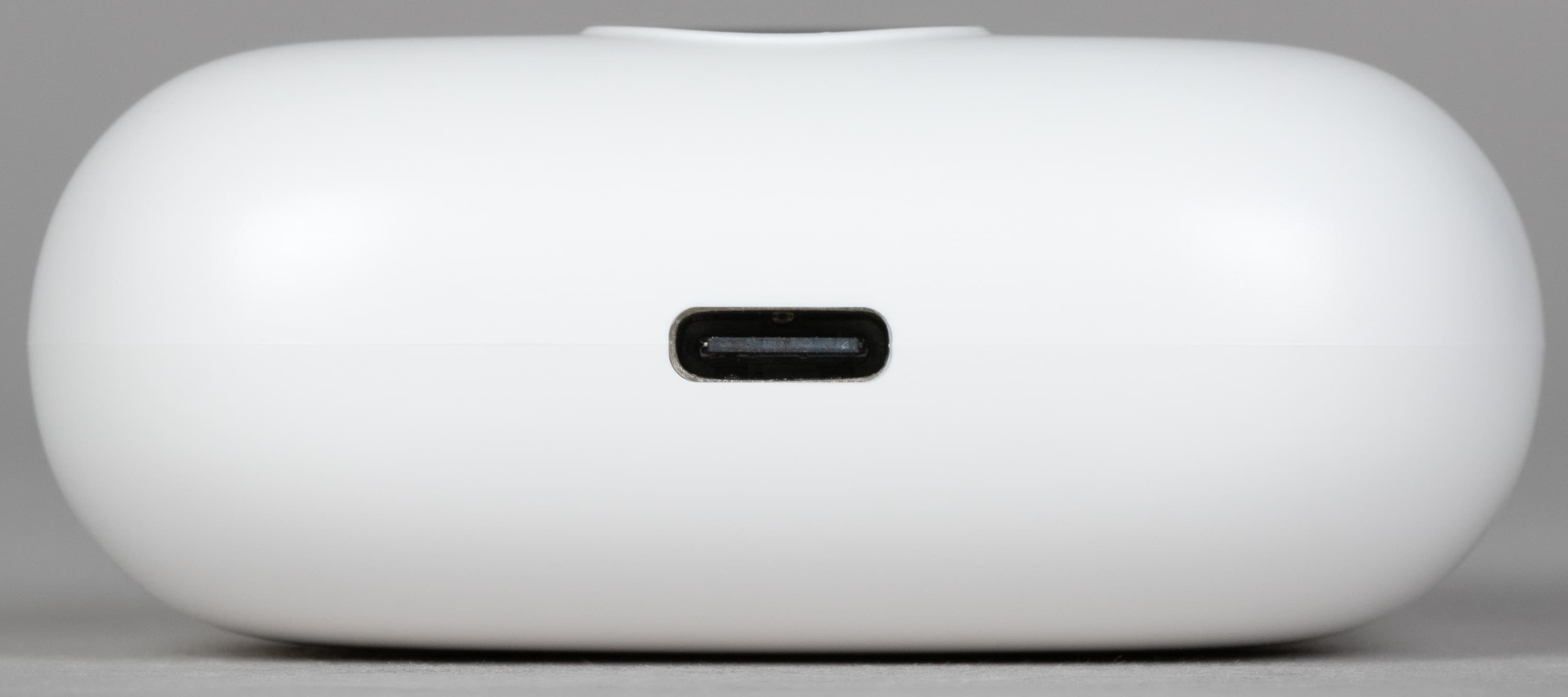 На дне футляра расположен порт USB Type-C для зарядки. Все штекеры, которые оказались под рукой во время тестирования, вставлялись в него не до конца, но плотно и с характерным кликом.