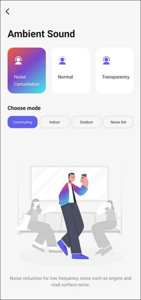 Система шумоподавления работает на уровне, характерном для бюджетных моделей: не идеал, но пользоваться можно и нужно — с «шумодавом» определенно комфортнее, чем без него. От гула метро он не спасет, но позволит не выкручивать громкость на максимум. Зато в условиях городской прогулки вдоль оживленной магистрали или в шумном кафе разница ощущается сразу — становится заметно тише и спокойнее. Отдельный плюс — возможность вручную настроить степень подавления. Это помогает избежать знакомого многим эффекта «давления в голове», который, может проявляться даже при не самой агрессивной работе системы.