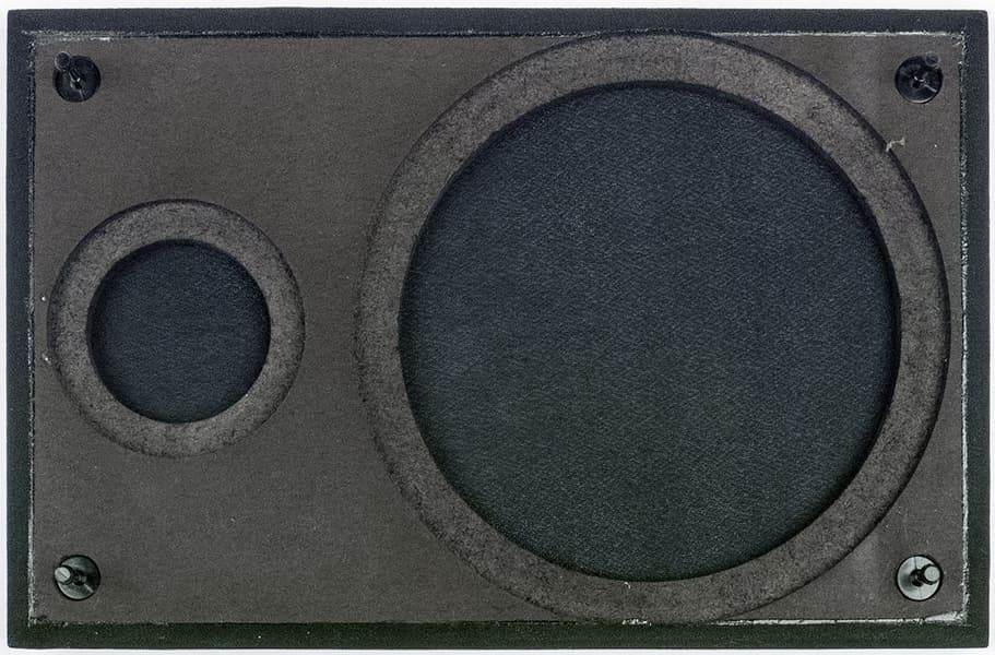 Съёмная декоративная накладка сделана в виде обтянутой неплотной тканью пластины из MDF с круглыми вырезами под динамики.