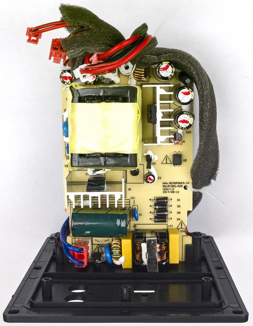 Монтаж везде довольно аккуратный, следов неотмытого флюса на платах нет. В источнике питания компоненты в основном навесные, на второй плате больше элементов SMD.