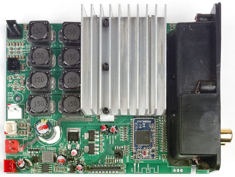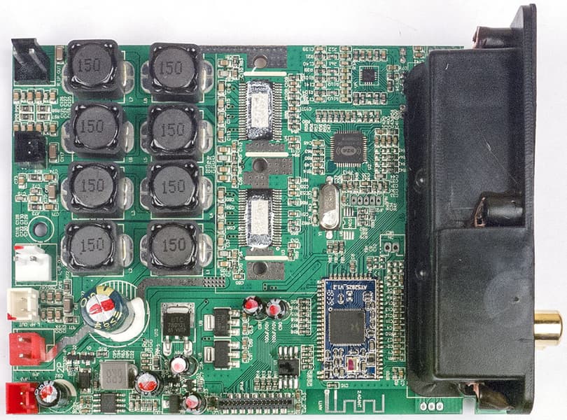 Основную часть верхней платы занимают компоненты обработки и усиления звука.