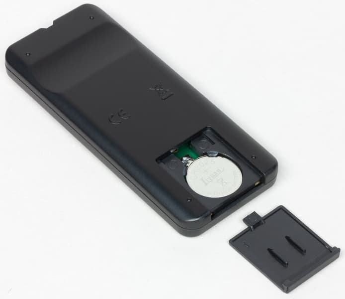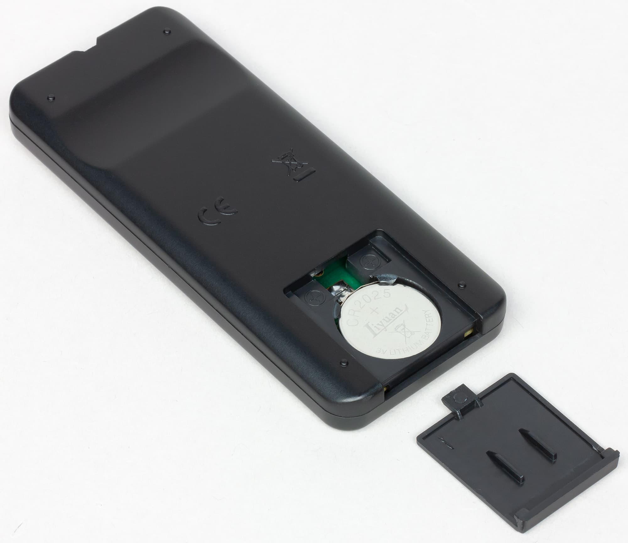 Пульт уверенно работает под небольшим углом к колонкам — направлять его прямо на них необязательно. Переключение режимов осуществляется с небольшой, но ощутимой задержкой. Питается ПДУ от батарейки формата CR2025.