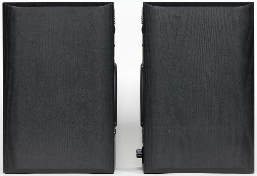 На боковых поверхностях ничего особенно интересного нет, они просто обтянуты черной виниловой пленкой, имитирующей фактуру древесного шпона.