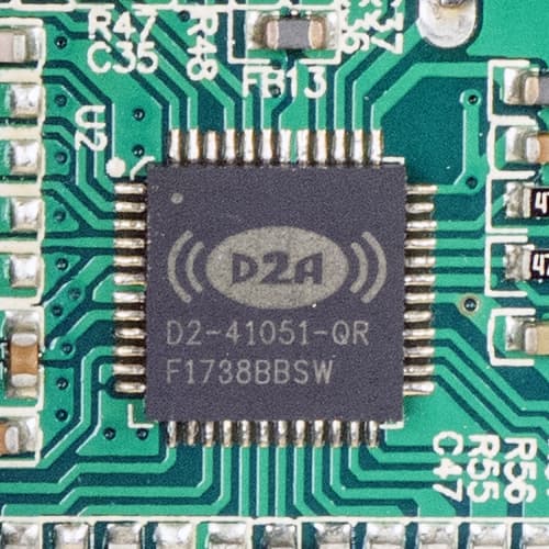 За обработку сигналов отвечает цифровой аудиопроцессор D2-41051, обеспечивающий в том числе и частотное разделение на две полосы для биампинга. Насколько можно судить в отсутствие соответствующей индикации, он способен сохранять установленный уровень громкости при отключении питания.