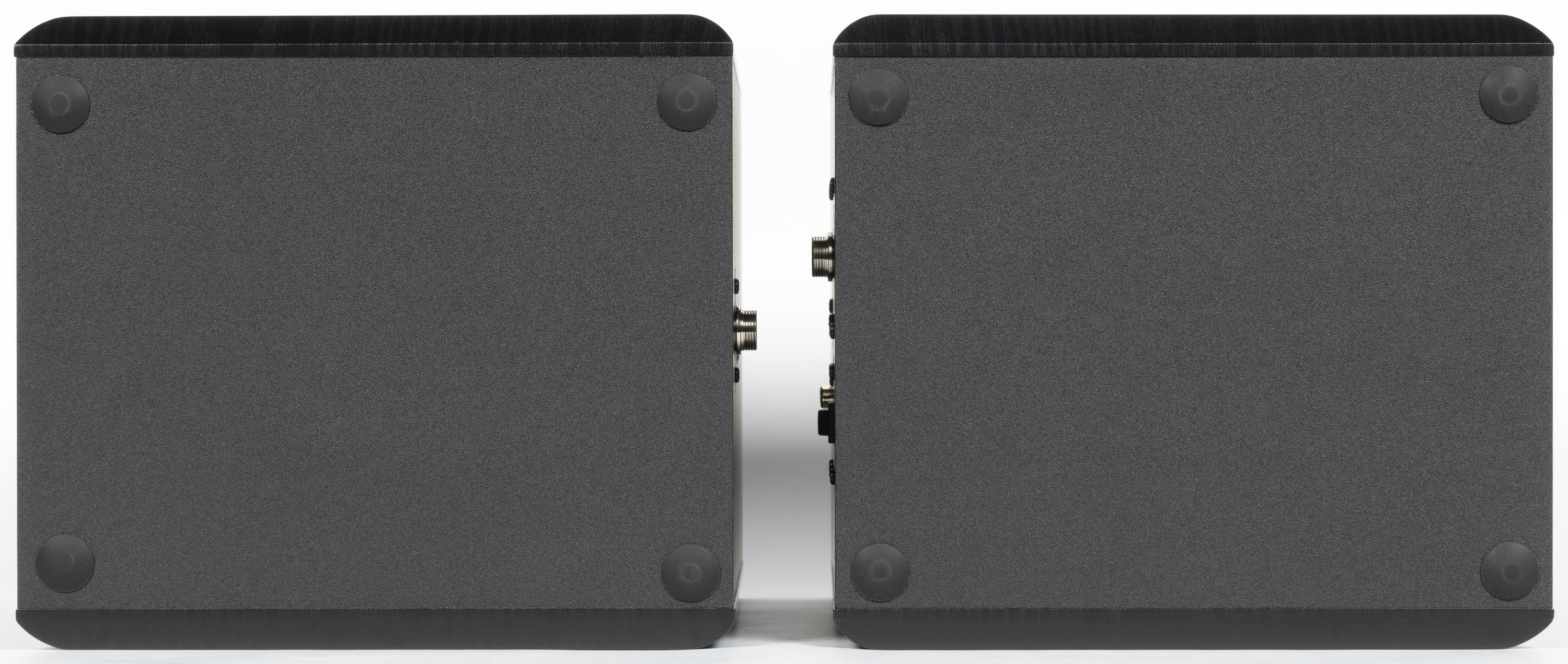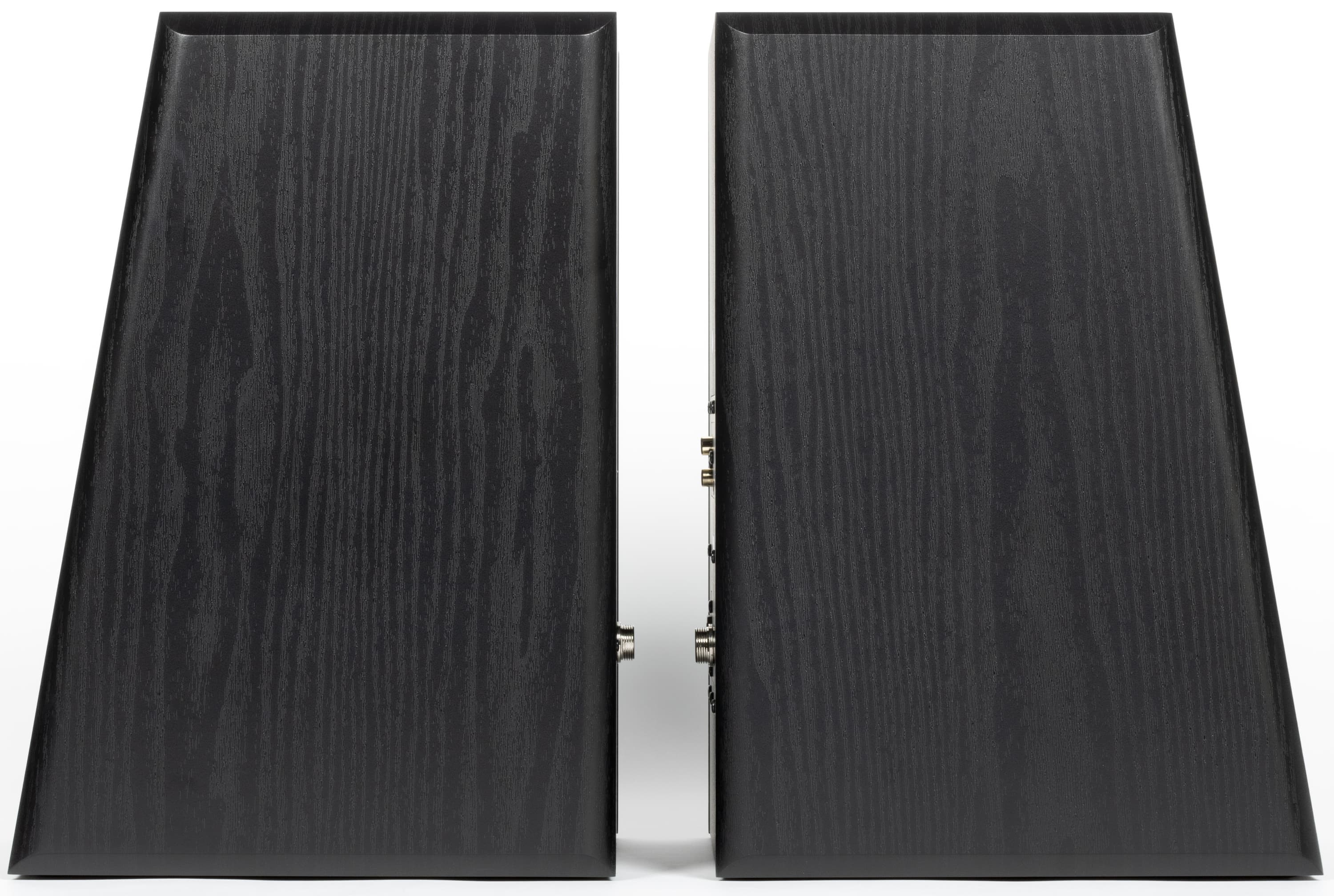 Верхняя и нижняя панели выполнены из MDF, покрытого матовой черной пленкой, которая еще более устойчива к загрязнениям. На дно наклеены ножки, сделано это чуть-чуть неровно — перфекционисты могут быть слегка шокированы. К счастью, при повседневном использовании акустики этот нюанс по понятным причинам совершенно не заметен.