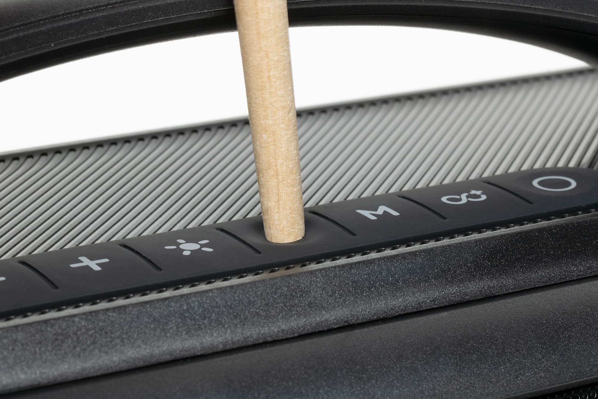 Переносить колонку легко и удобно — как за ручку сверху, так и с помощью наплечного ремня. Что же касается защиты от воды — судя по сборке, с ней все отлично. Заявлен уровень IPХ5, то есть устойчивость к направленным струям воды. Мы не стали слишком усердствовать, но пару раз все же направили душ на колонку с разных сторон. На ее работоспособность или внешний вид это приключение никак не повлияло. Так что водозащита действительно присутствует и работает. С автономностью все традиционно неоднозначно: на средней громкости колонка работала от 8 до 12 часов с включенной подсветкой, что в любом случае очень неплохо — на вечеринку точно хватит.