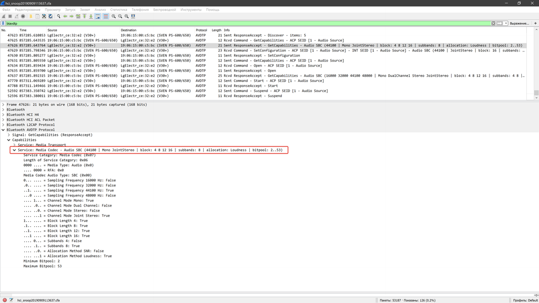 Далее устройство пробует подключиться к «знакомым» источникам, после чего доступно для обнаружения. Кодек, конечно же, используется только один, и это SBC — для данного типа устройств ничего большего и не требуется. Управление плеером гаджета с помощью кнопок колонке корректно работает, хотя при таком типе подключения удобнее управлять и воспроизведением, и громкостью с источника.