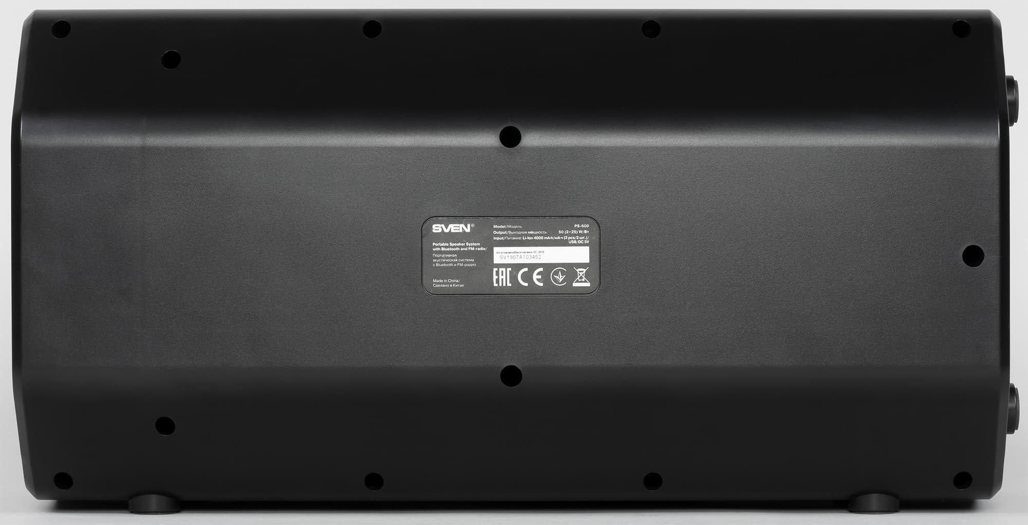 Ну и классический для бумбоксов метод переноски на плече для Sven PS-600 вполне применим благодаря скругленным граням.