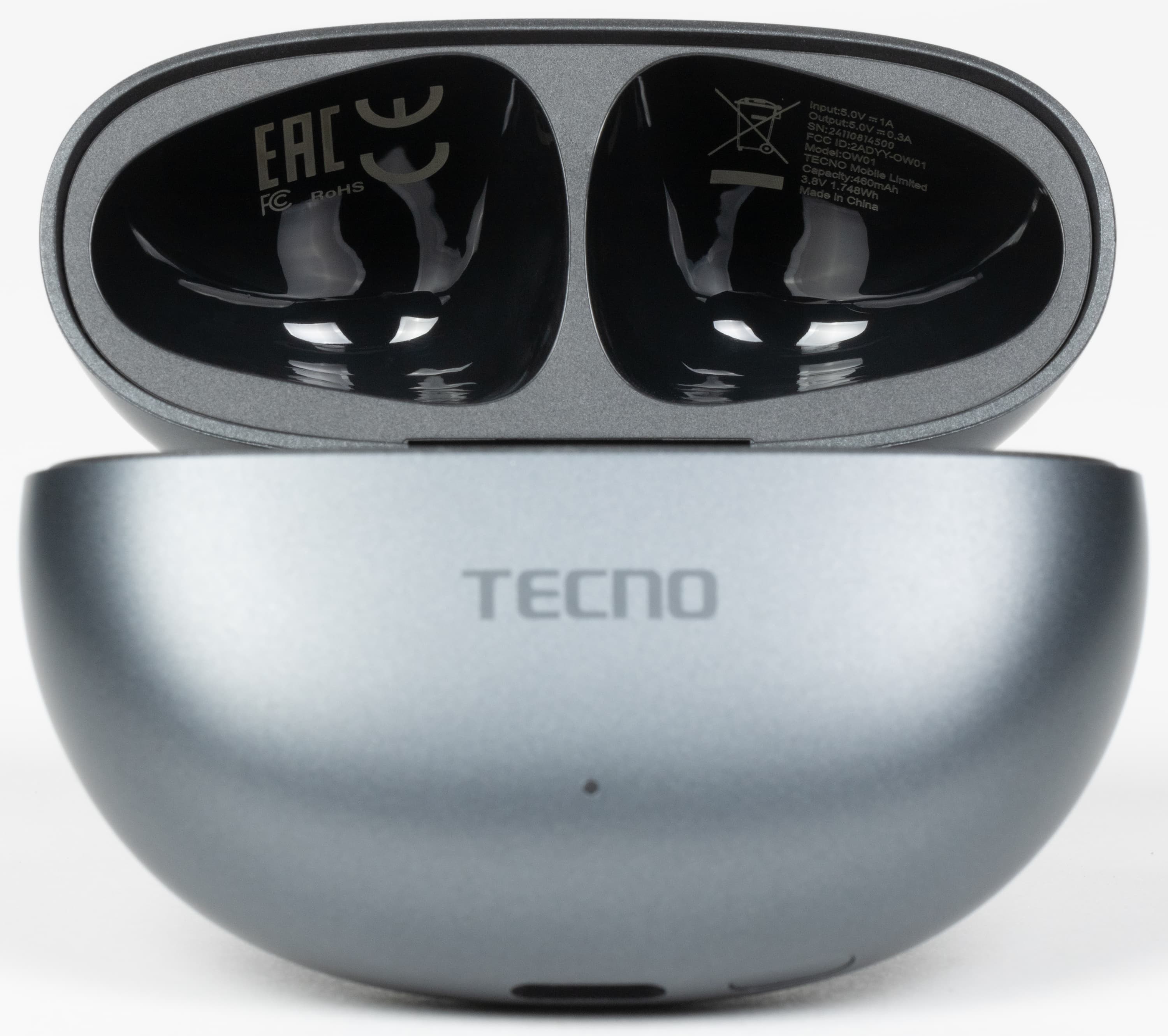 Наушники удерживаются на своих местах за счет магнитов — при открытии крышки они остаются в слотах и не выпадают. Во внутренней части посадочных гнезд расположены подпружиненные контакты для зарядки.