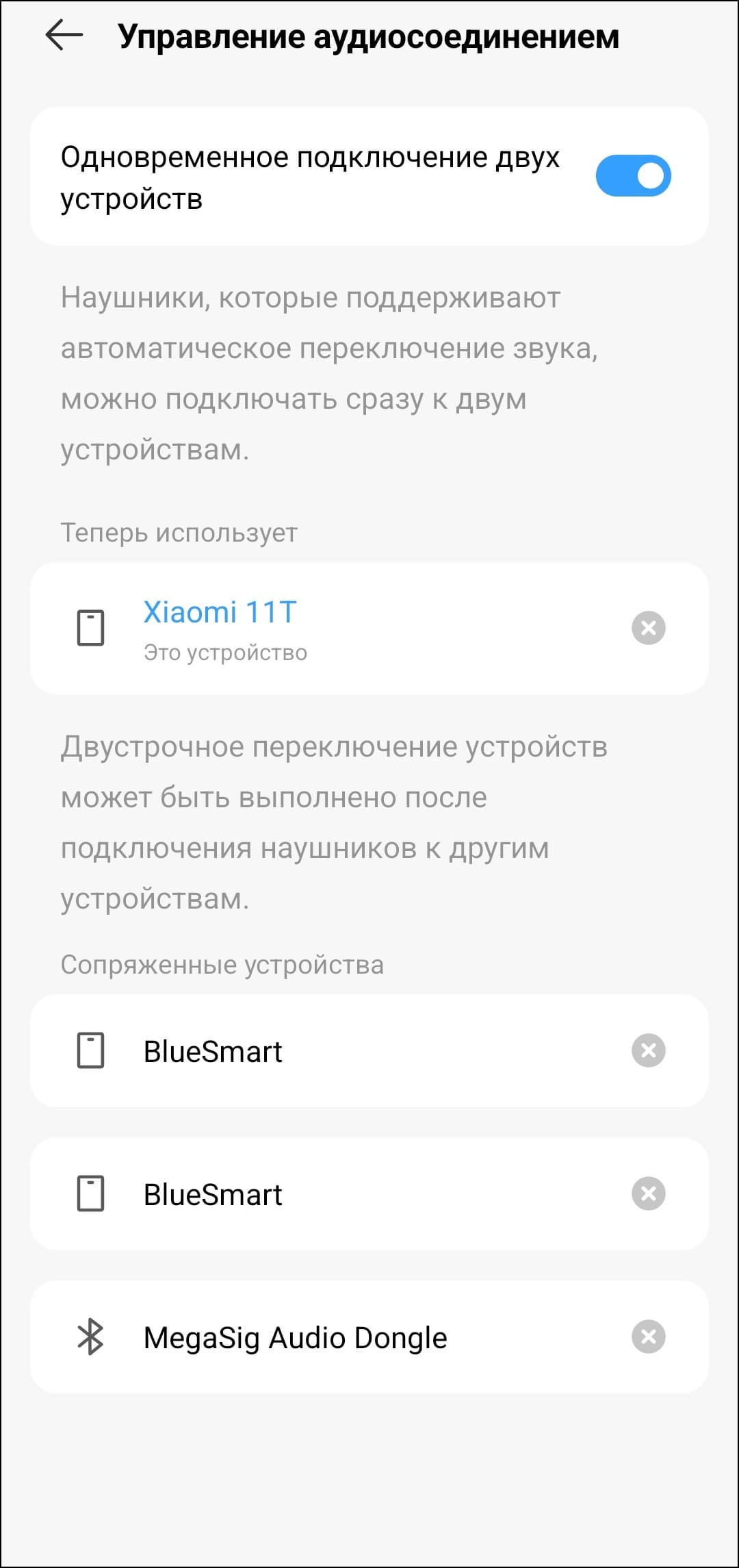 После извлечения из кейса наушники пытаются соединиться с ранее «знакомым» устройством. Если не удается, запускается режим сопряжения, также его можно активировать принудительно с помощью кнопки на кейсе. Со смартфонами Tecno поддерживается быстрое соединение, в остальных случаях придется воспользоваться стандартной процедурой. У гарнитуры есть полноценный мультипойнт, переключение между источниками происходит корректно. Этой функцией разработчики не стали жертвовать ради снижения цены, за что им отдельный респект.