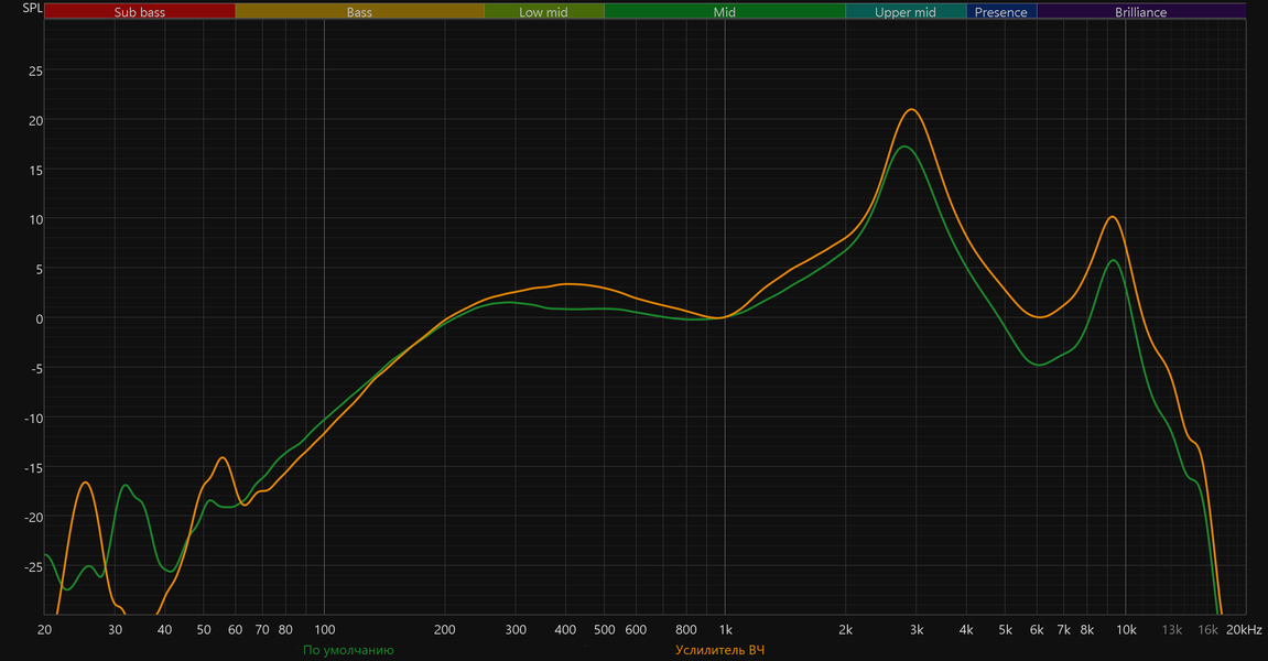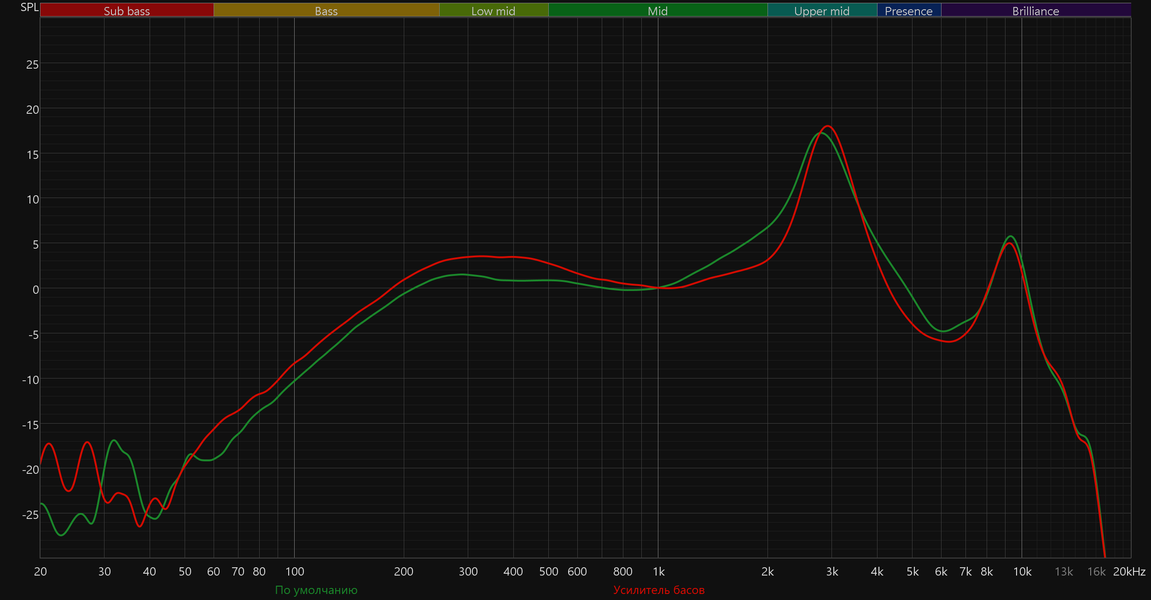 В целом все очень неплохо — довольно ровная середина, включая нижнюю ее часть, хорошо читаемые высокие — для повседневного прослушивания этого более чем достаточно. Но вот баса нет практически совсем и дело тут не столько в возможностях динамика, сколько в его размещении относительно далеко от основания слухового прохода. Для легкой пробежки под джаз — отлично, а вот для силовых под качающий звук хип-хопа — уже не очень, хотя и тут дело вкуса. Заметный пик в районе 10 кГц периодически приводит к слишком резкому звучанию высоких, но чаще все же добавляет субъективно ощущаемой детализации и воспринимается довольно органично.