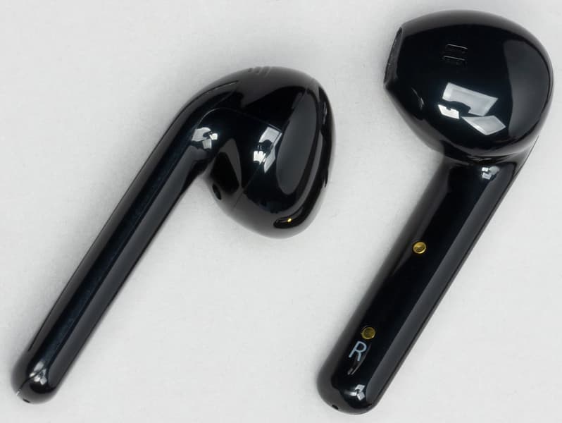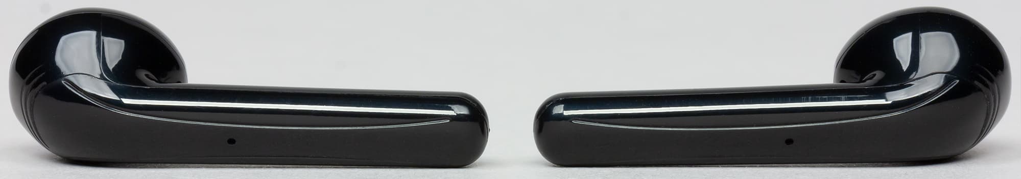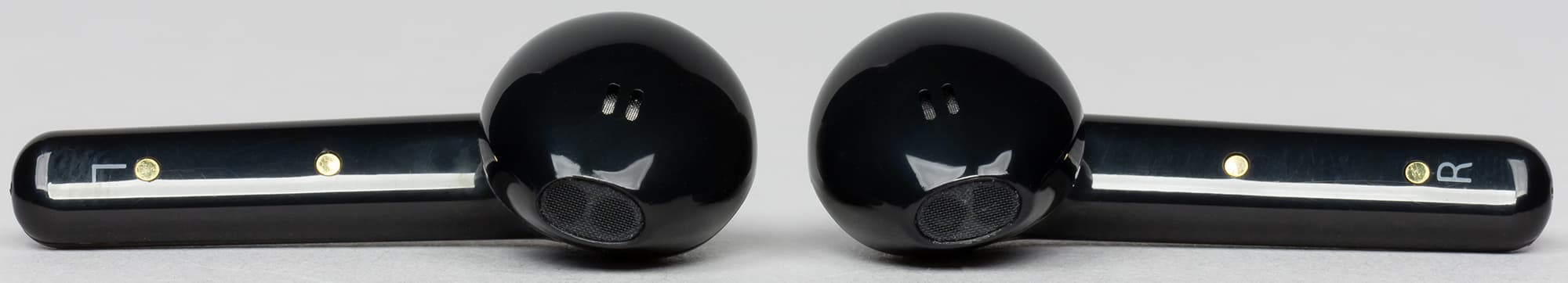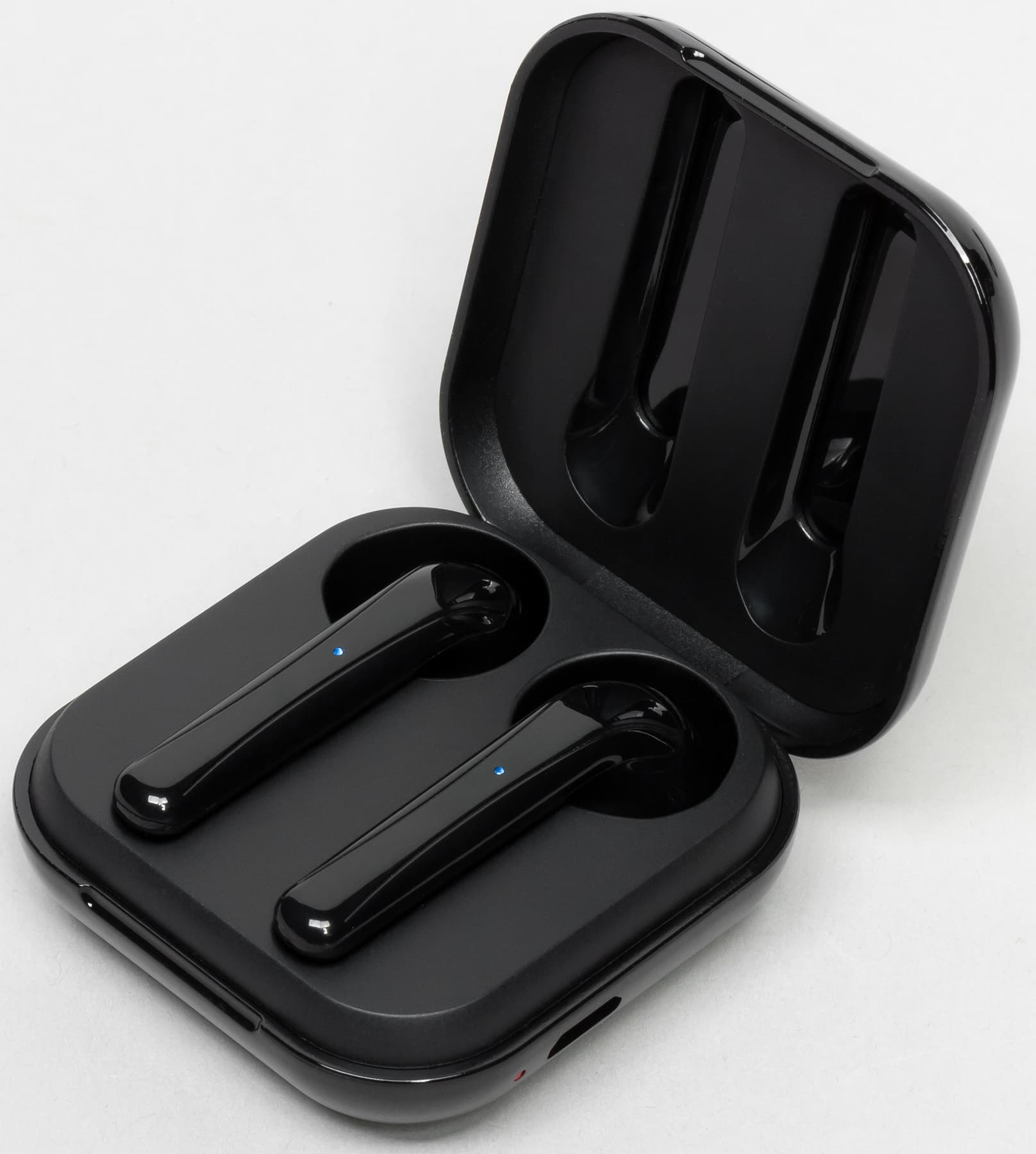 Конструкция наушников немного отличается от привычного формата «TWS-гарнитуры с палочкой» — как минимум тем, что эта самая «палочка» имеет уплощенную форму. У нас на тестировании были черные наушники. Также они доступны в белом варианте оформления.