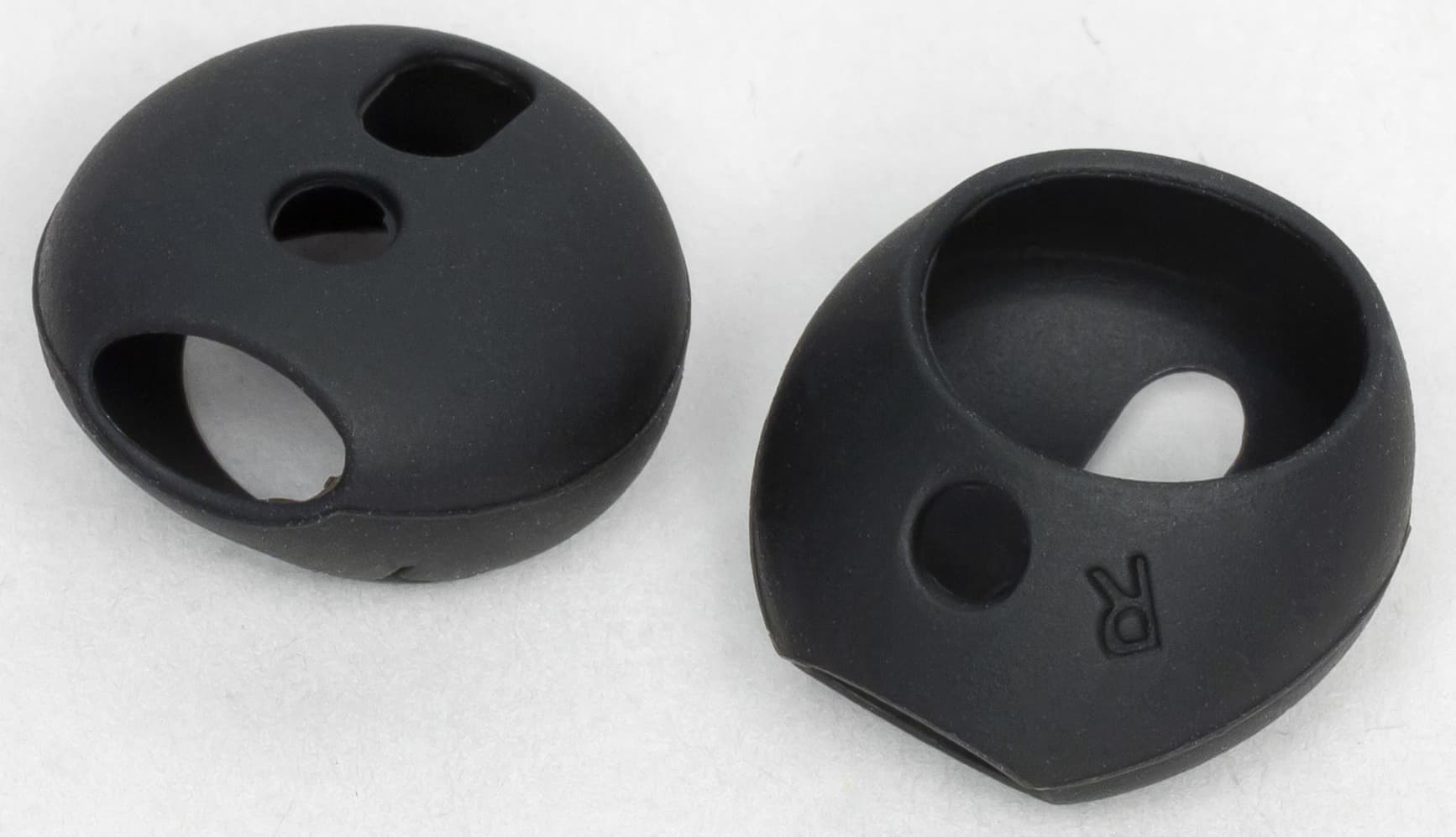 Надевать накладки нужно аккуратно — следить за совпадением всех отверстий. С ними наушники входят в чехол с небольшим усилием, вынимаются, соответственно, тоже. Заметного дискомфорта это не доставляет, но иметь в виду данную особенность стоит. В целом же, само наличие этих накладок — серьезный бонус для любителей активного отдыха и спорта.