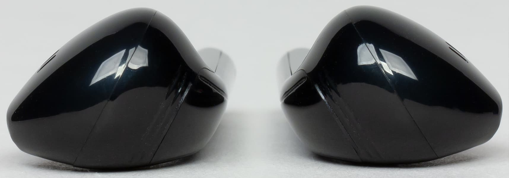 В верхней части наушников на внешней стороне расположен сенсор для управления, который внешне никак не заметен. Ниже находятся два небольших индикатора режимов работы и зарядки.