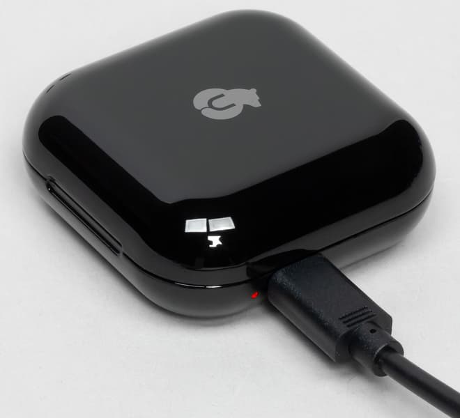Во время зарядки кейса его индикатор мигает красным светом, после окончания — продолжает гореть, пока подключено внешнее питание. Индикаторы наушников во время зарядки включены, по окончании — отключаются. Быструю зарядку устройства не поддерживают: и наушники, и кейс с нуля до максимума заряжаются примерно за 1,5 часа. Но требовать от представителя среднебюджетного сегмента еще и этого было бы слишком. В целом проблем со временем автономной работы не наблюдается, если не забывать убирать наушники в кейс во время пауз в прослушивании.