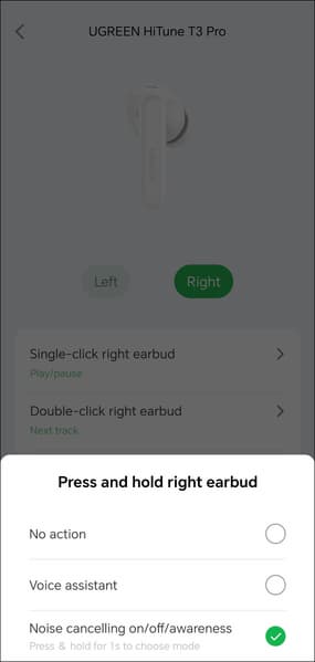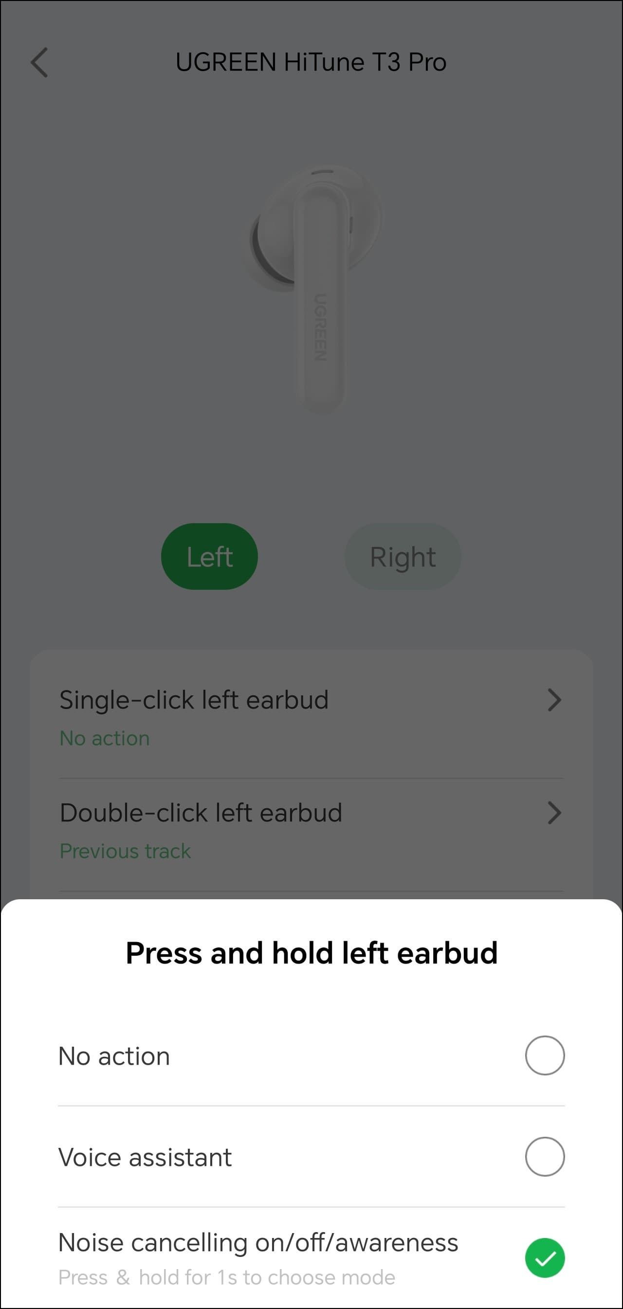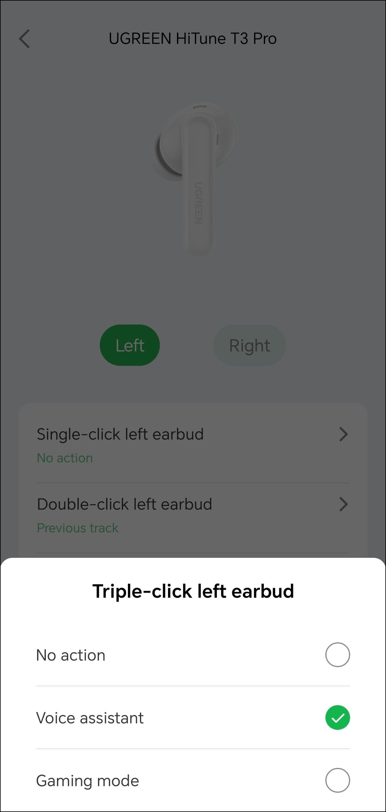 Управление гибко настраивается, система умеет отличать левый и правый наушники, на разные типы касаний можно «повесить» любые действия, включая изменение громкости — так бывает далеко не всегда, причем даже у гораздо более дорогих наушников, за это Ugreen HiTune T3 Pro стоит похвалить отдельно.