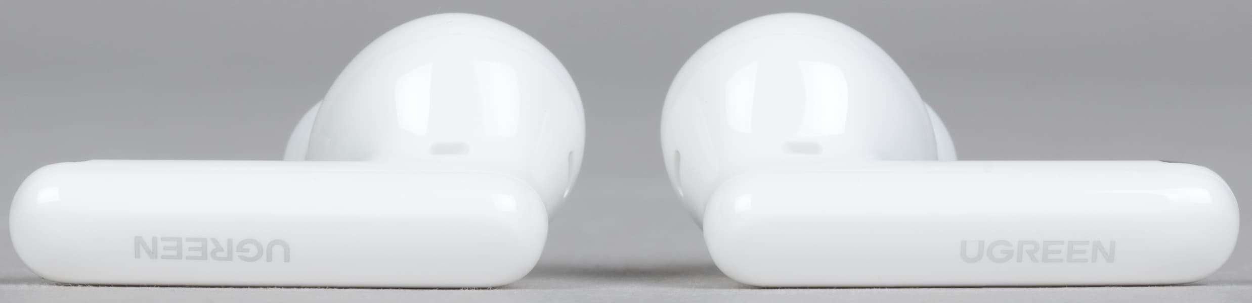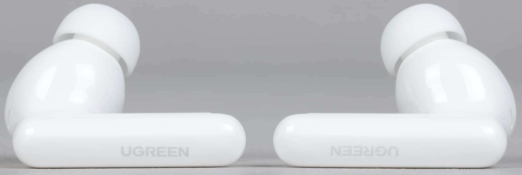 Посадка у Ugreen HiTune T3 Pro уверенно хорошая — они неплохо держатся в ушах, при этом не причиняют лишнего дискомфорта. Правда, во время занятий спортом крепление медленно, но верно ослабевает — возникает ощущение, что наушники вот-вот вывалятся из уха, приходится их поправлять. Вроде бы и пластик не очень скользкий, и форма округлой части довольно сложная — но вот чего-то самую малость не хватило. С учетом наличия заявленного уровня влагозащиты IPX5 использовать их для разного рода активностей всё же можно — где-нибудь на легкой пробежке высокий уровень стабильности посадки не требуется, а легкий дождик HiTune T3 Pro без проблем переживут.