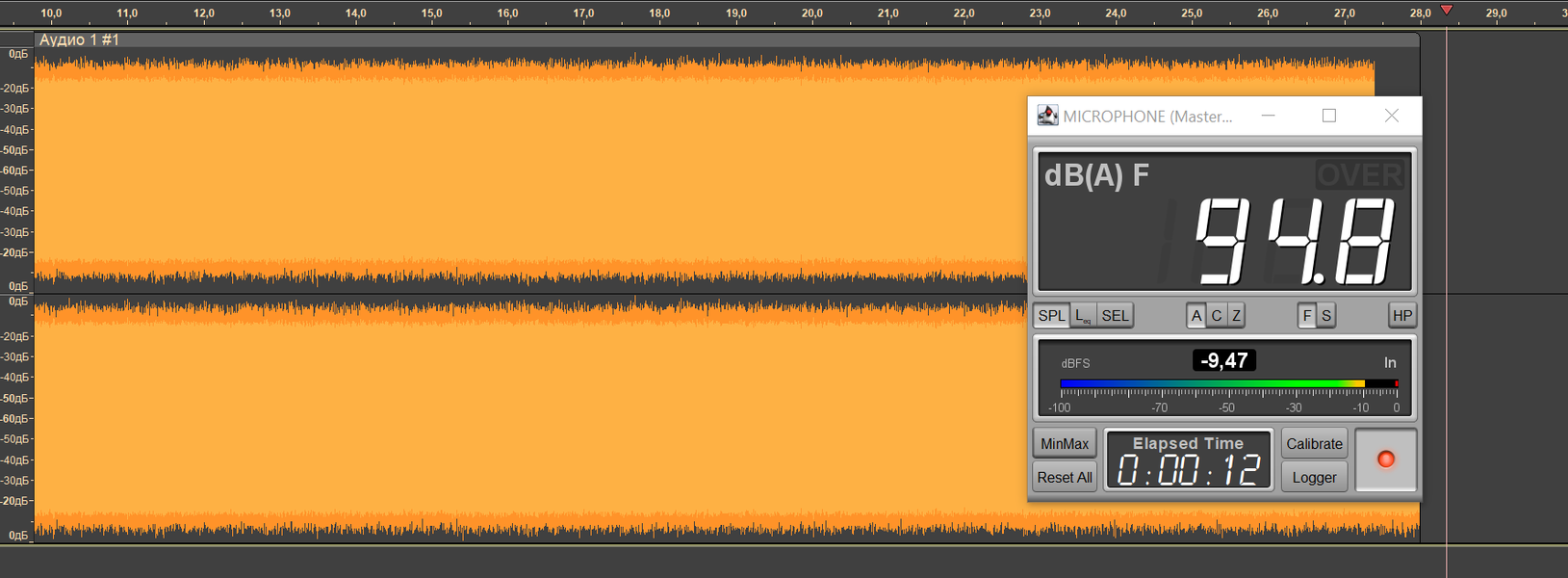 Посмотрим, как покажут себя в работе микрофоны для голосовой связи. Ниже размещены два трека. На первом речь записана с помощью микрофонов гарнитуры. Второй записан на расположенный примерно на том же расстоянии профессиональный рекордер с заведомо высоким качеством записи и приводится для сравнения.