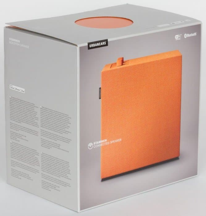 Urbanears Stammen поставляется в картонной коробке с изображением устройства, названием модели и маркировкой беспроводных интерфейсов и поддерживаемых устройств. Размеры и вес коробки позволят донести покупку до дома самостоятельно, не заказывая доставку. Колонка хорошо упакована, за целостность содержимого можно не переживать, если вы все же решили воспользоваться доставкой.