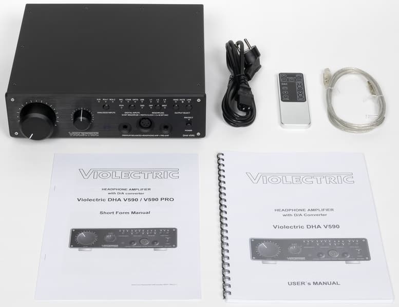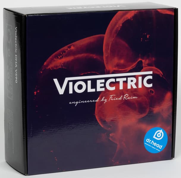 Поставляется Violectric DHA V590 в черной коробке со сдержанным оформлением: красные разводы, схематическое изображение устройства, логотип, да краткие характеристики — очень строго, но стильно. Внутри все надежно закреплено с помощью ложементов из пенистого материала, упаковано в отдельные пакеты и так далее — в общем, за сохранность при транспортировке можно особо не переживать.