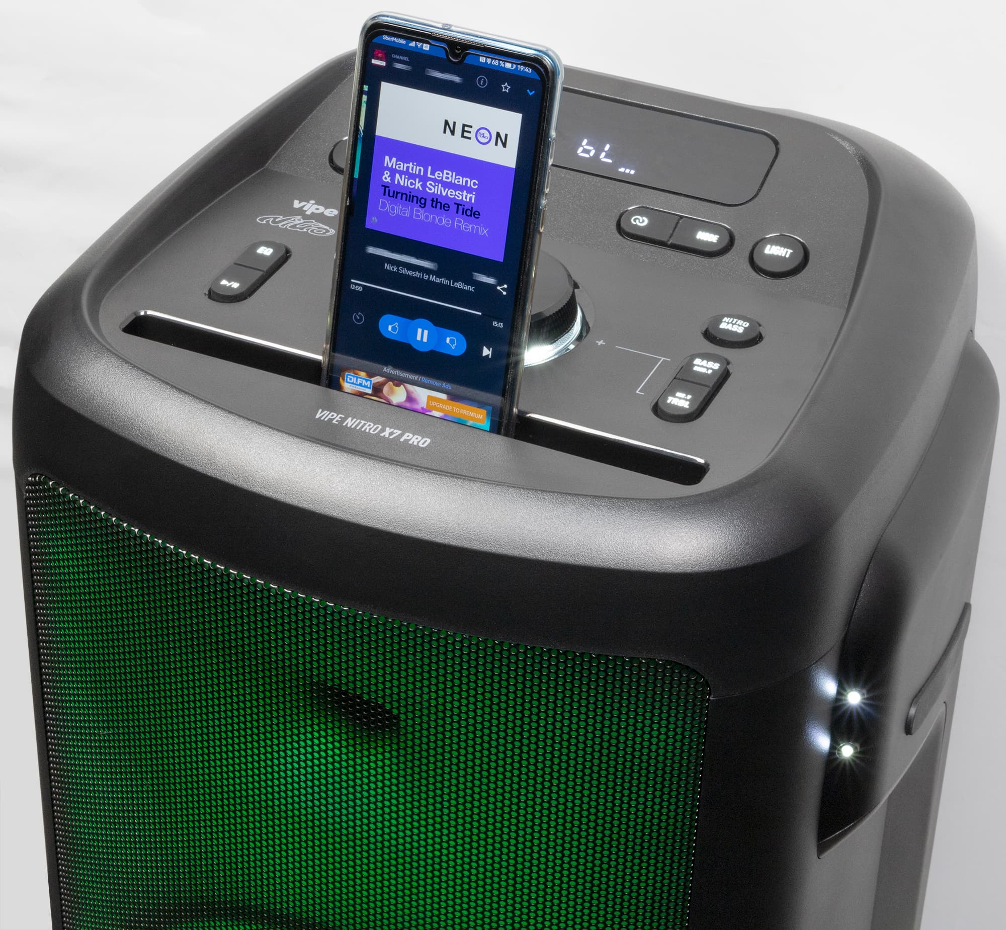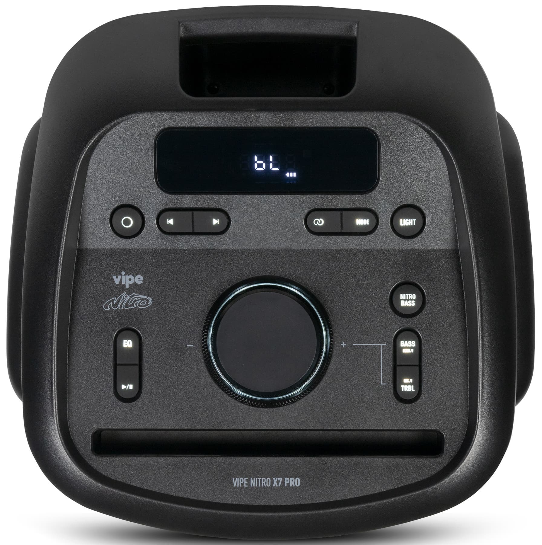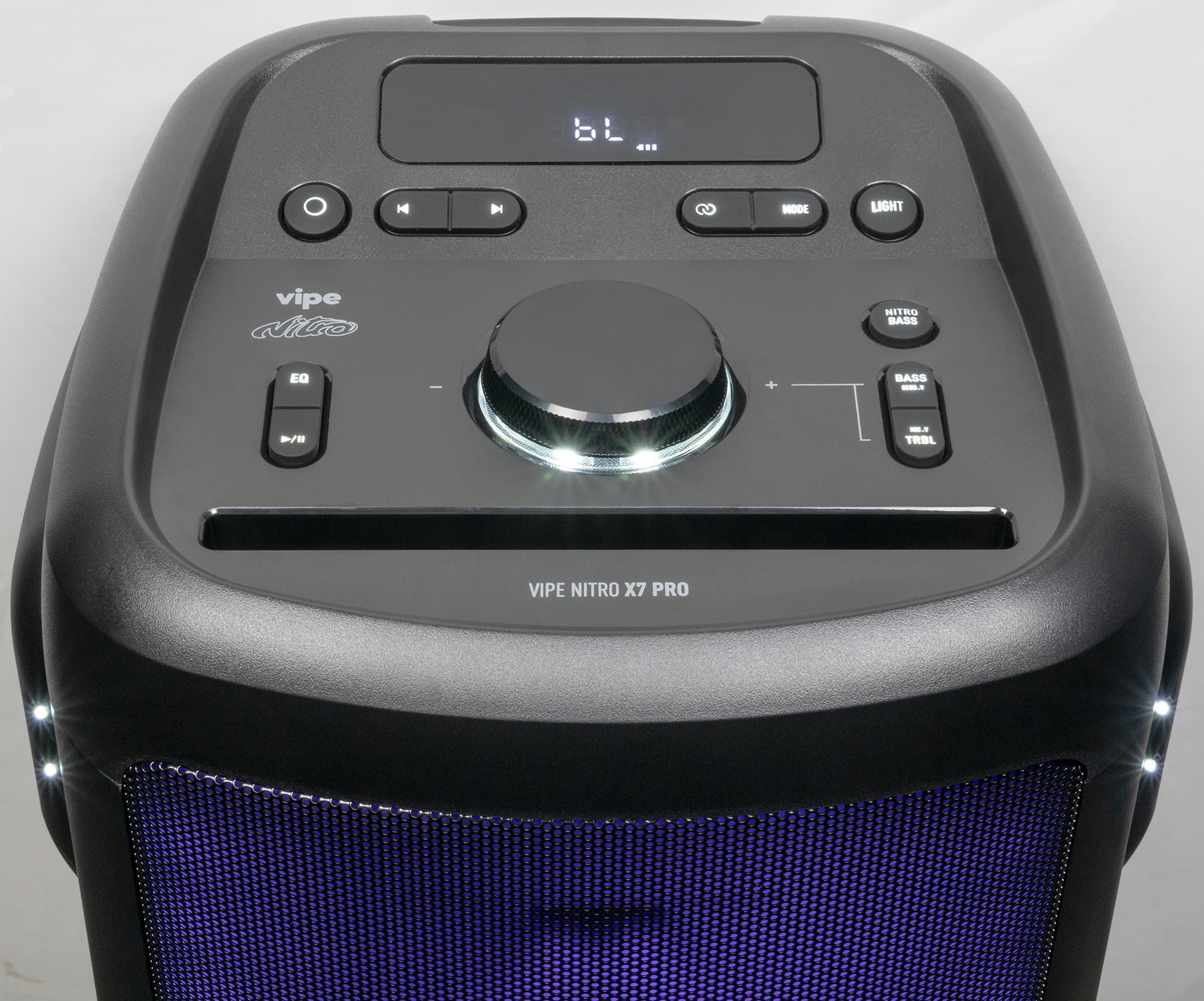 Масса музыкальной системы Vipe Nitro X7 Pro составляет внушительные 25 кг, а заявленная мощность — 300 Вт. За автономную работу в течение 10 часов отвечает свинцовый аккумулятор, предусмотрена возможность подключения гитары и микрофона, что потенциально делает Vipe Nitro X7 интересной для уличных музыкантов и просто любителей спеть пару песен где-нибудь на природе. Помимо этого есть, конечно, Bluetooth-подключение, FM-приемник, возможность воспроизведения аудиофайлов с USB-носителей.