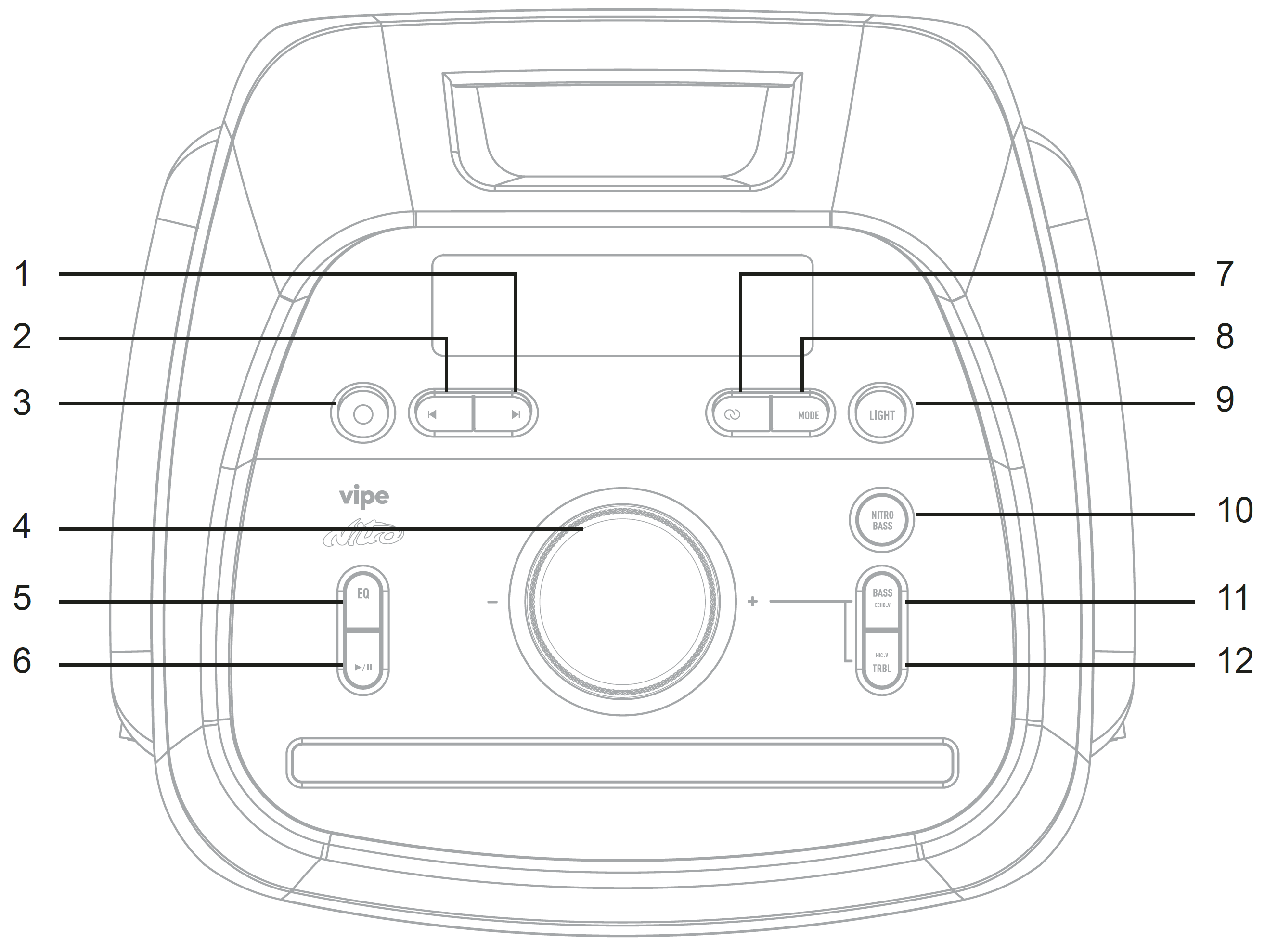- Кратковременное нажатие: активирует режим Nitro Bass (увеличение уровня низких частот)