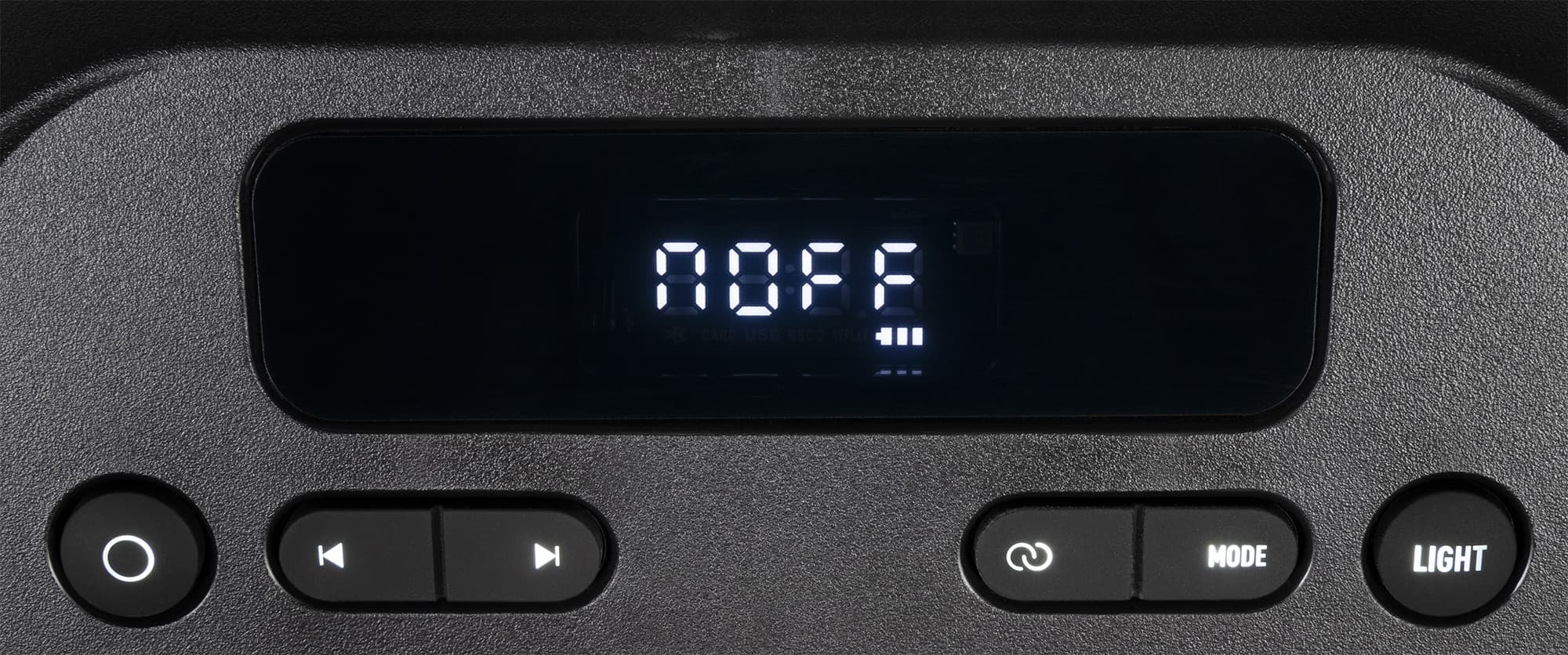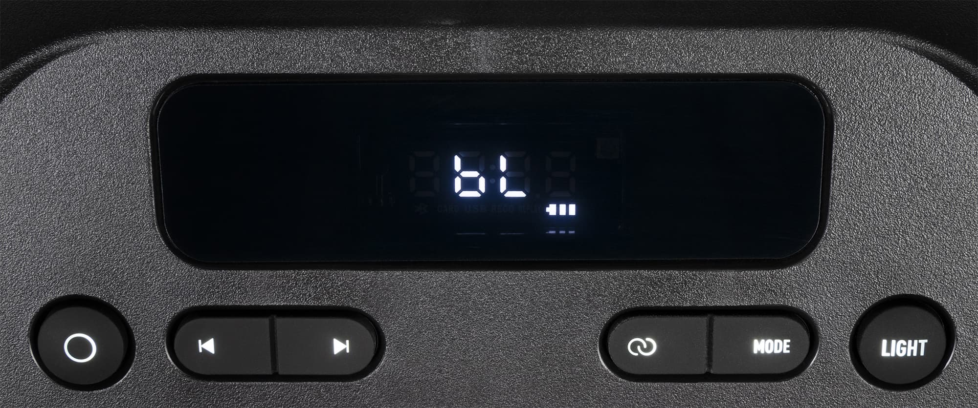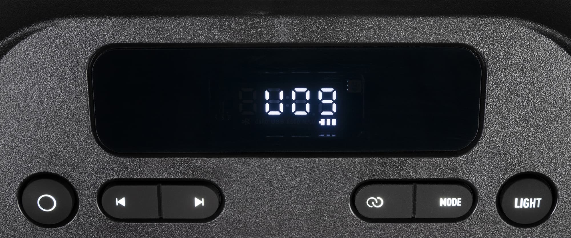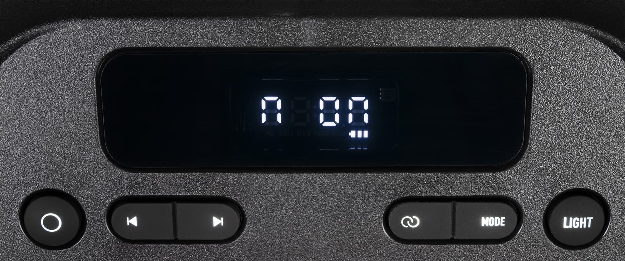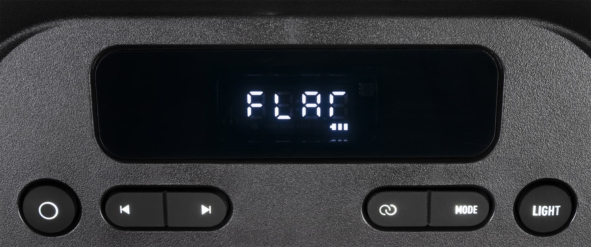 Встроенный экранчик помогает сориентироваться в том, что происходит с колонкой — он способен отображать название пресета эквалайзера, значения громкости, частоту радиостанции — в целом, вся необходимая информация имеется. Но разряда всего четыре, да еще и индикаторы всего лишь семисегментные — соответственно, вместо какого-нибудь «FLAT» отображается «FLAГ». Приспособиться можно, но экономия на экране в устройстве, розничная цена которого более 30 тысяч рублей — это странно.