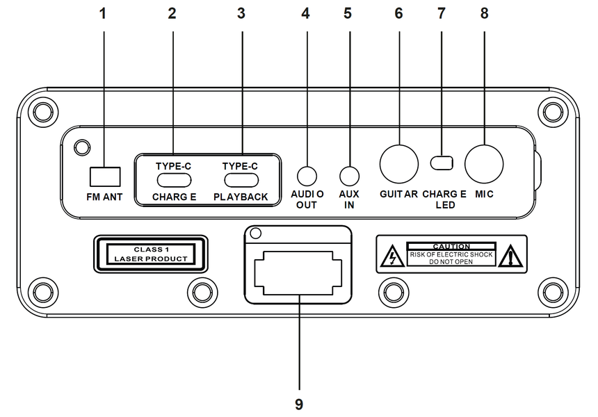 Вход для гитары отличается чуть большим уровнем предусиления, чем микрофонный. Плюс на него не накладывается эффект «эхо». Работают оба хорошо, вот только громкость и выраженность эффекта регулируются не самым удобным образом — приходится нажимать кнопки-модификаторы, а уже потом крутить основной регулятор. Места на верхней панели предостаточно, было бы отлично увидеть на ней отдельные регуляторы уровня для каждого входа. Но их нет, зато есть выход USB Type C, от которого можно запитать какой-нибудь компактный микшерный пульт, если будет такая необходимость.
