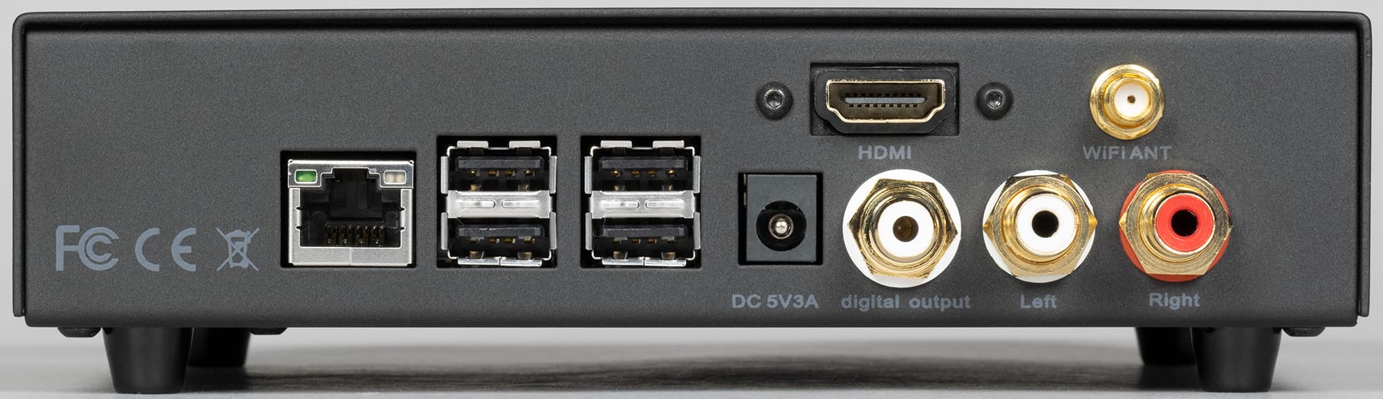 Порты USB могут служить для подключения различных накопителей, либо внешнего ЦАП — такая возможность тоже имеется. Правда, на наш взгляд, приобретать плеер с собственным очень неплохим ЦАПом, который включен в его стоимость, после чего отказаться от его использования — затея спорная. Но бесполезной от этого опция не становится — Volumio Primo вполне есть смысл рассматривать как первый шаг к построению мультимедийной системы. Какое-то время можно использовать его возможности, а в момент, когда появятся желание и средства — добавить в систему более «продвинутый» ЦАП.