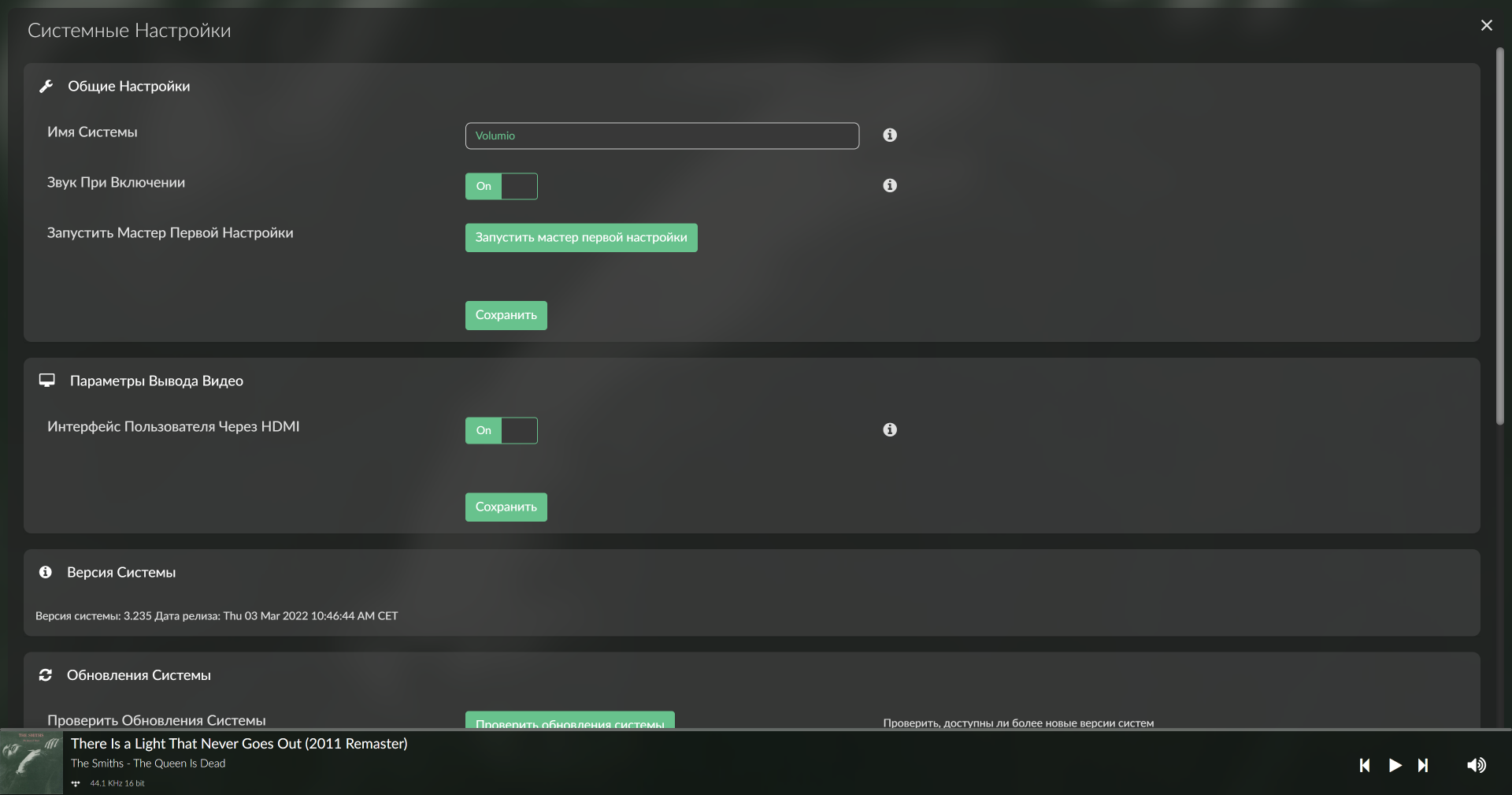 Но это если захочется — в целом, достаточно просто подключить плеер к усилителю с помощью выходов RCA. Цифровой выход S/PDIF тоже есть, но тут мы столкнемся с ограничением по выходному потоку 24 бит/192 кГц. Видеоконтент Volumio Primo воспроизводить не умеет, однако выход HDMI у него есть — он служит для отображения интерфейса управления на ТВ, что тоже может пригодиться в ряде случаев.
