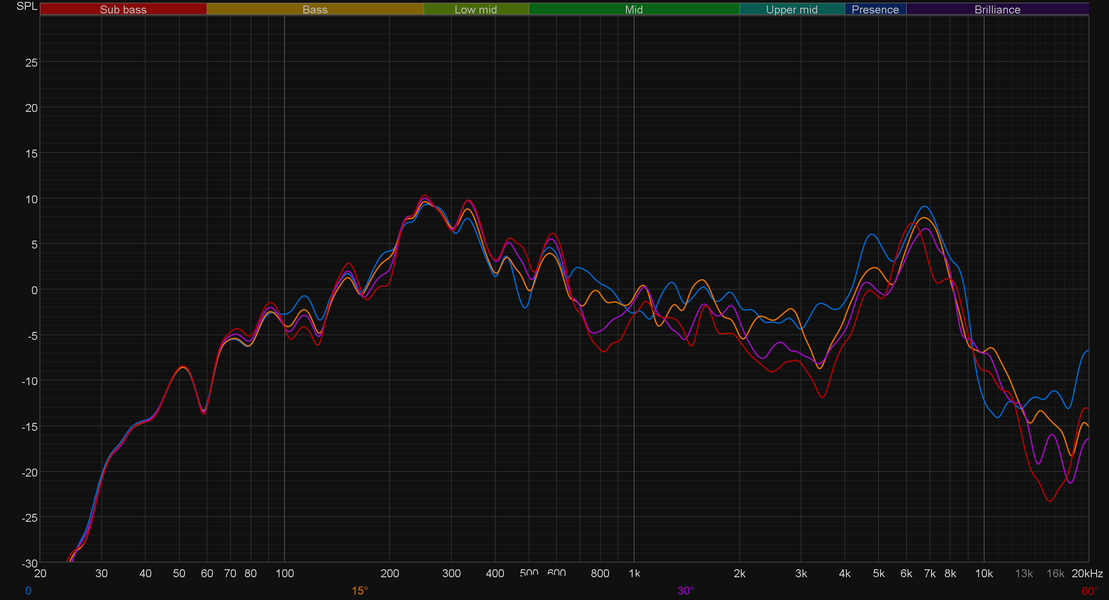 А вот с горизонтальной дисперсией звука все неплохо — при вращении колонки относительно измерительного микрофона звук остается практически неизменным. То же самое можно сказать и про изменение высоты микрофона — даже если колонки будут находиться на уровне пояса слушателя, звучание особо не пострадает. Это было бы хорошей новостью, если бы оно изначально не было запредельно плохим.