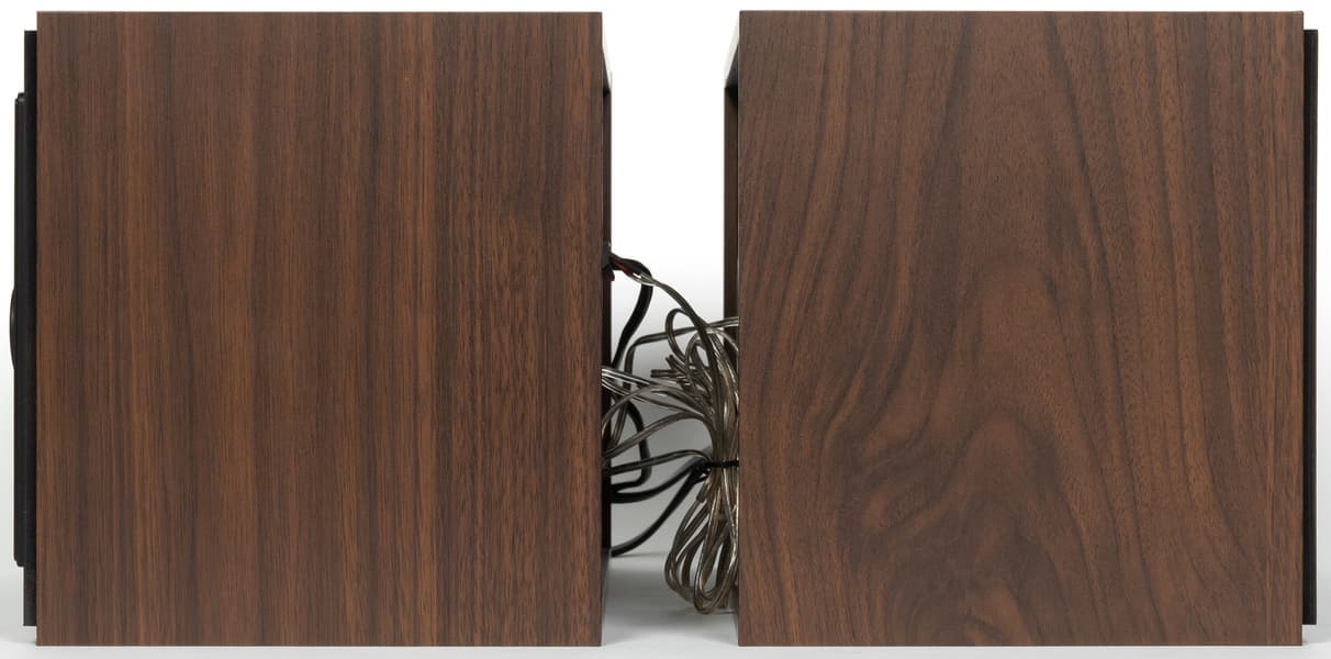 Длина кабеля — 2,5 метра, концы даже как-то там обработаны… Но выглядят, мягко говоря, не очень. Но опять-таки, на общем фоне такие мелочи быстро перестаешь замечать. Длины с запасом хватит для того, чтобы расставить колонки даже на большом столе и добиться выраженного стереоэффекта.