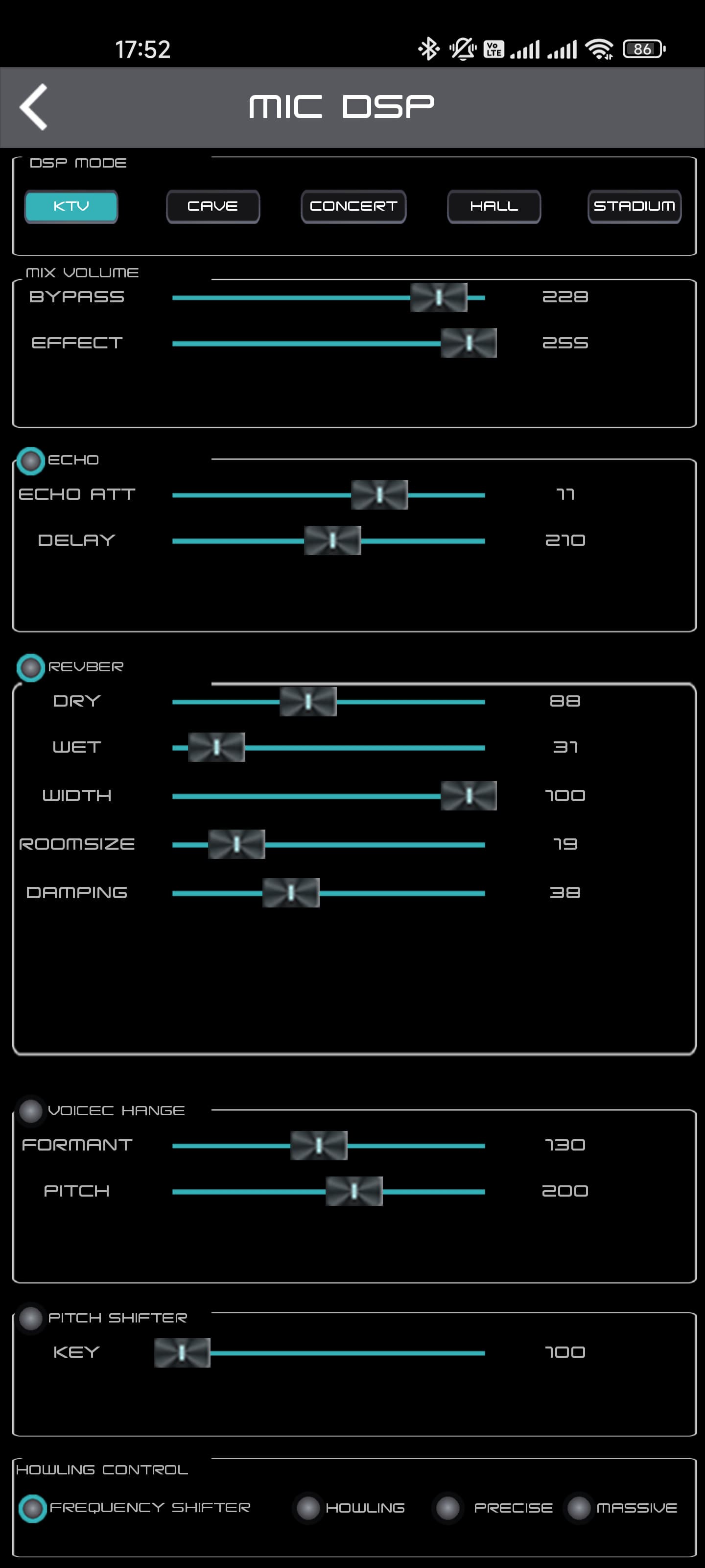 У микрофона есть свой эквалайзер, плюс секция обработки с кучей опций — впечатляет. И, наконец, FM-радио с возможностью автопоиска, ручной настройкой и быстрым доступом к сохраненным станциям.