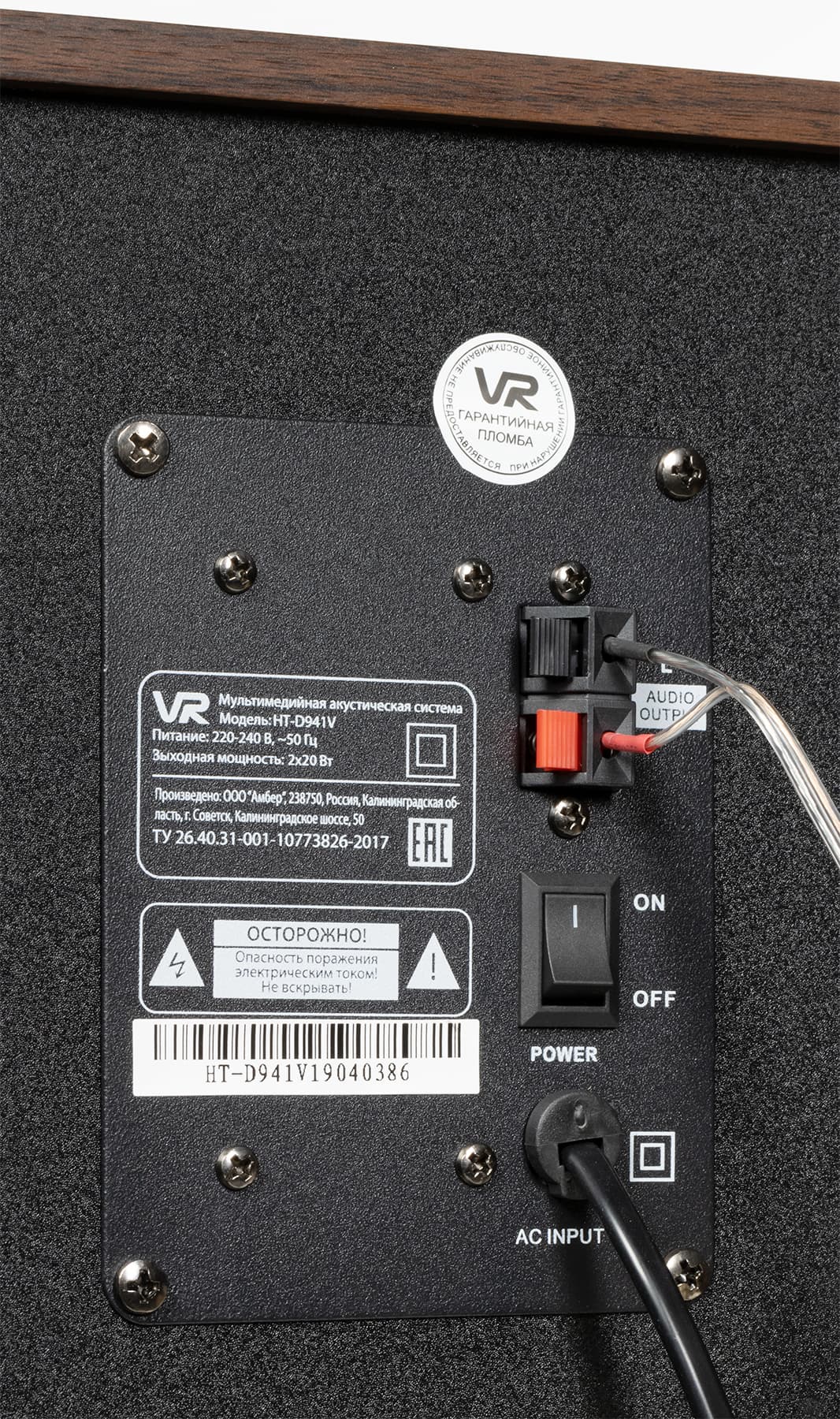 Что особенно интересно, в России функционирует завод VR Electronics, расположенный в г. Советск Калининградской области. Где как раз и была произведена двухполосная акустика HT-D941V, которая вызывает просто массу любопытства: производитель делает особый акцент на высоком качестве звучания и том, что ее усилитель выполнен на дискретных элементах (транзисторах). Кроме того, колонки оснащены несколькими входами для источников звука, регуляторами тембра, входами для подключения микрофонов, ПДУ и прочими «фишками».