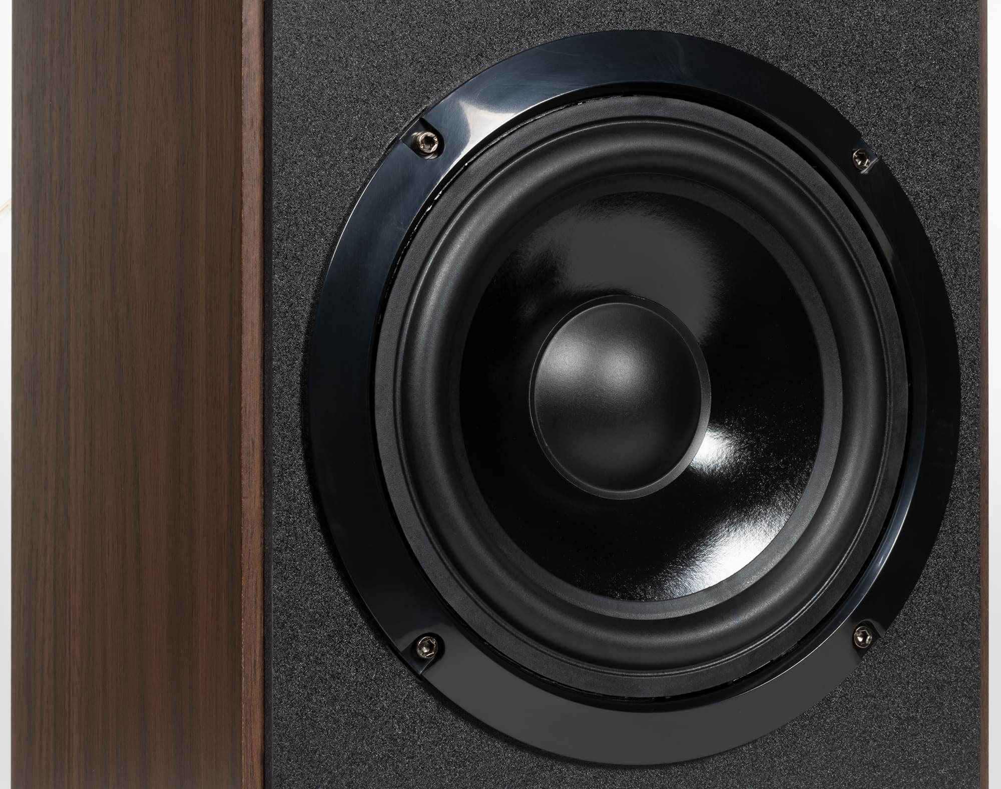 Диаметр низкочастотного динамика — 16,5 см, высокочастотного — 2,5 см. Твитер защищен пластиковой накладкой, параллельно выступающей в качестве пусть и спорного, но все же декоративного элемента.