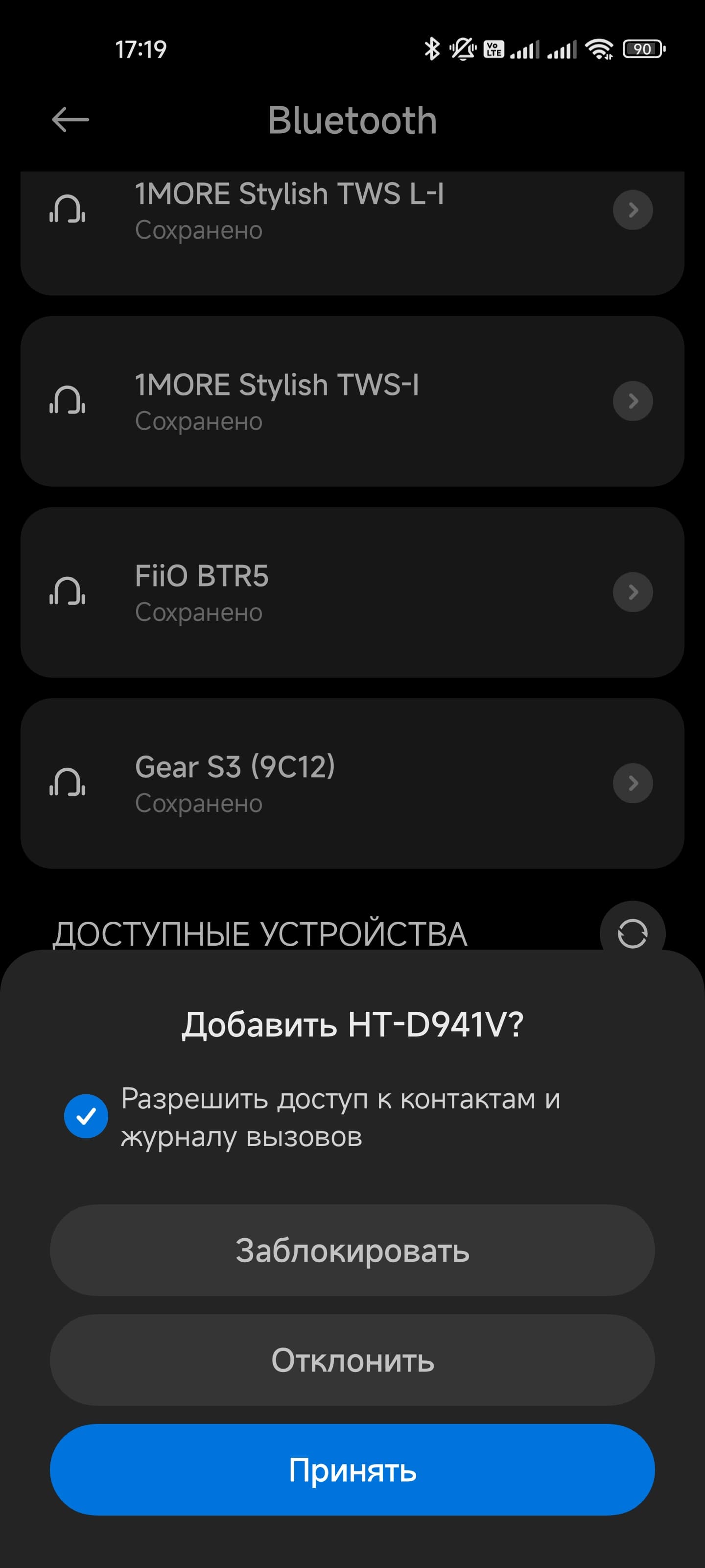 Видимо, разработчики предлагают пользоваться беспроводным подключением. Будущее наступило, причем в принудительном порядке — нечего тут всякими кабелями баловаться. Что делать, подключаемся посредством Bluetooth. Версия, кстати, старенькая — 4.2, но придираться к таким мелочам нет уже ни сил, ни желания. Активируем соответствующий вход с помощью пульта или кнопок на панели, некоторое время акустика пытается найти «знакомые» устройства, потом запускает процесс сопряжения. Остается найти ее в меню гаджета.