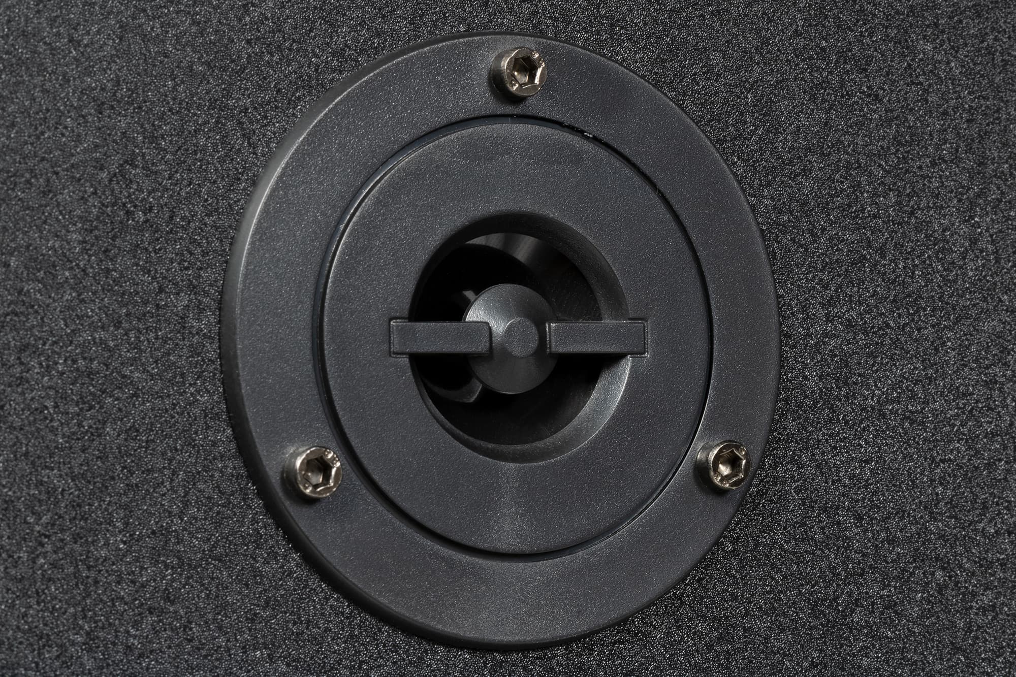 В нижней части задней панели находится отверстие фазоинвертора, внутри которого виднеется защитный пластиковый элемент.