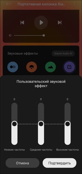 На странице устройства собрано несколько модулей. Первый помогает управлять воспроизведением, но при этом не умеет «подтягивать» названия треков из плеера, а потому практически бесполезен. Далее идет раздел выбора пресетов эквалайзера: можно выбрать один из трех предустановленных или создать свой. Правда, для этого доступно всего три полосы — прямо скажем, крайне мало. В то время как в приложениях для портативной акустики уже встречается почти полноценный параметрический эквалайзер, такое решение больше похоже на упрощенную имитацию тонкой настройки, чем на реальный инструмент.
