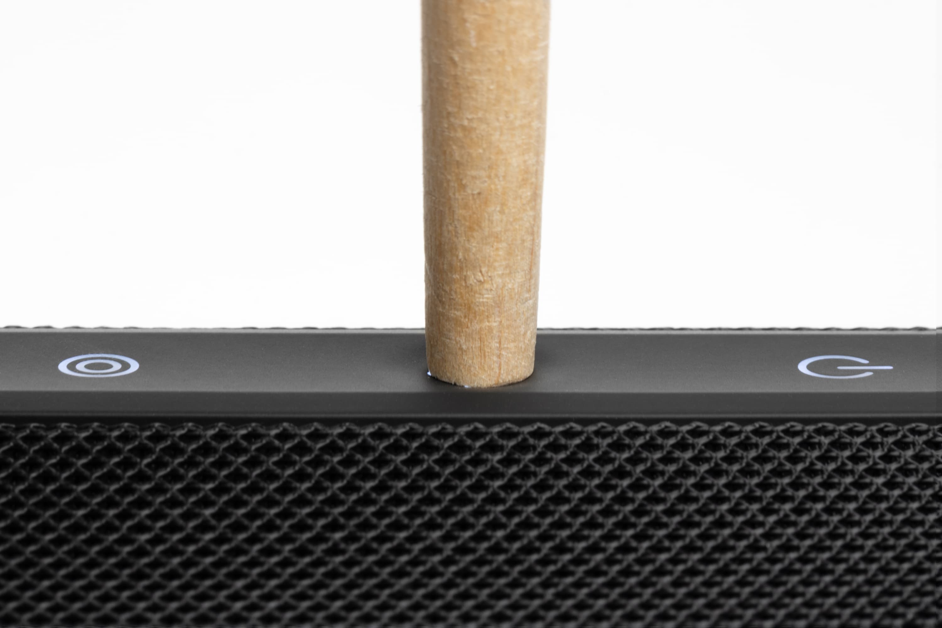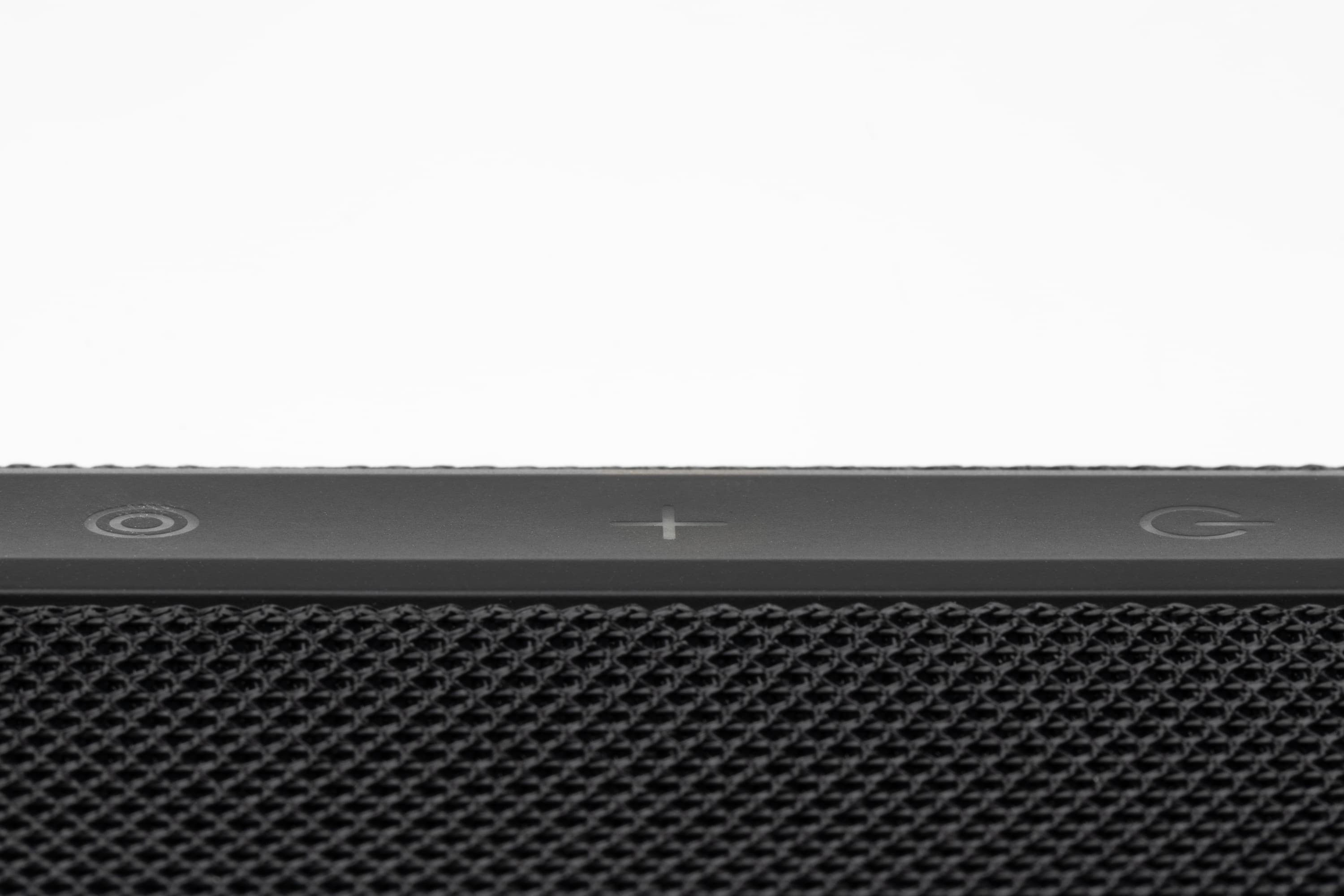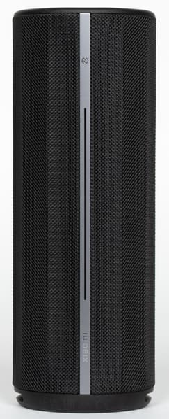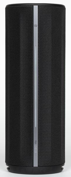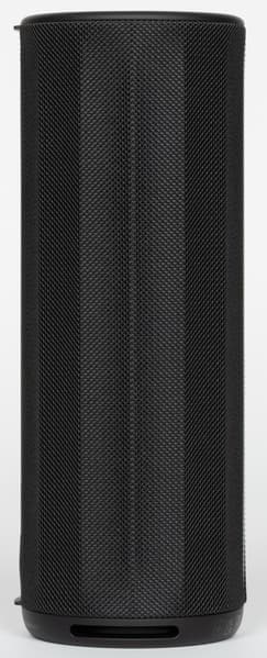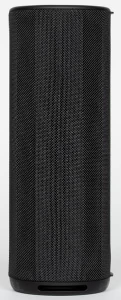 Боковые стороны колонки обтянуты тканевой сеткой с довольно крупным плетением. Поверхность обработана водоотталкивающим составом: попавшая на нее вода почти не впитывается и скатывается каплями. Материал неплохо противостоит загрязнениям и при необходимости легко очищается. На торцах корпуса расположены резиновые вставки, обрамляющие пассивные излучатели. Нижняя из них дополнительно приподнимает колонку при вертикальной установке, что помогает басу свободнее распространяться.