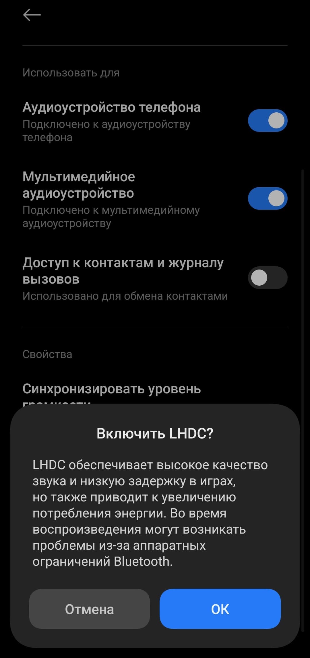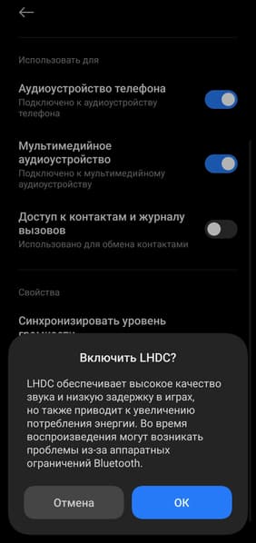 В нашем случае по умолчанию активировался кодек AAC, но тут все зависит от используемого смартфона и его прошивки — вполне вероятно, что у кого-то автоматически задействуется LHDC. Нам же пришлось активировать его вручную через системное меню Bluetooth, при этом через фирменное приложение включить его невозможно.