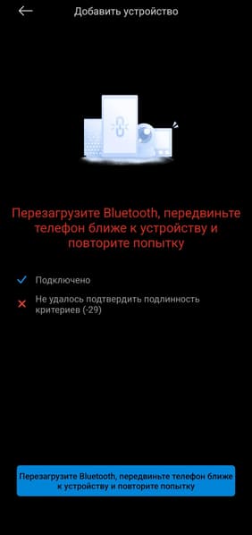 Настроить управление колонкой через приложение Mi Home тоже не получится, но польза от него все же есть — установить стоит. Например, только там можно отключить подсветку: отдельной кнопки для этого не предусмотрено. Однако при подключении возникли очередные трудности. Приложение сообщило, что ему «не удалось подтвердить подлинность критериев» — что бы это ни значило. Пришлось разорвать сопряжение с устройством и настроить все заново, иначе проблема не решалась.