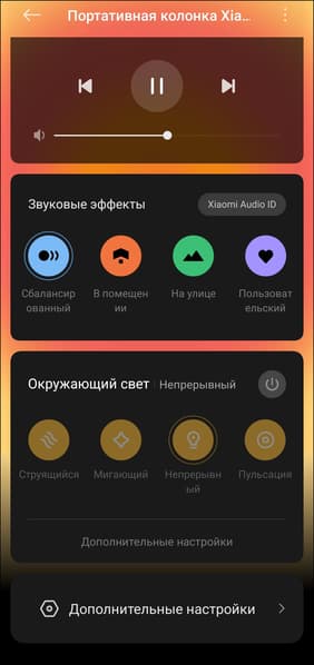 А вот дальше начинаются вопросы. NFC для быстрого сопряжения и мультипойнт — функции полезные, но работают нестабильно. Поддержка LHDC заявлена, однако по умолчанию почти всегда активируется AAC, а выбрать кодек напрямую в приложении нельзя. Само приложение — отдельная история. Mi Home изначально создавалось для управления умным домом, и для портативной акустики оно откровенно неудобно. Из реально полезного там только настройка подсветки, а трехполосный эквалайзер и несколько предустановок больше напоминают опции «для галочки», чем полноценные инструменты.