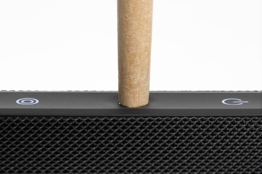 Благодаря ребристым боковым граням Xiaomi Bluetooth Speaker довольно уверенно держится на боку и не скатывается. Устойчивость, конечно, далеко не образцовая: даже легкий толчок способен сдвинуть корпус. Но для обычного использования на столе или полке этого вполне хватает.