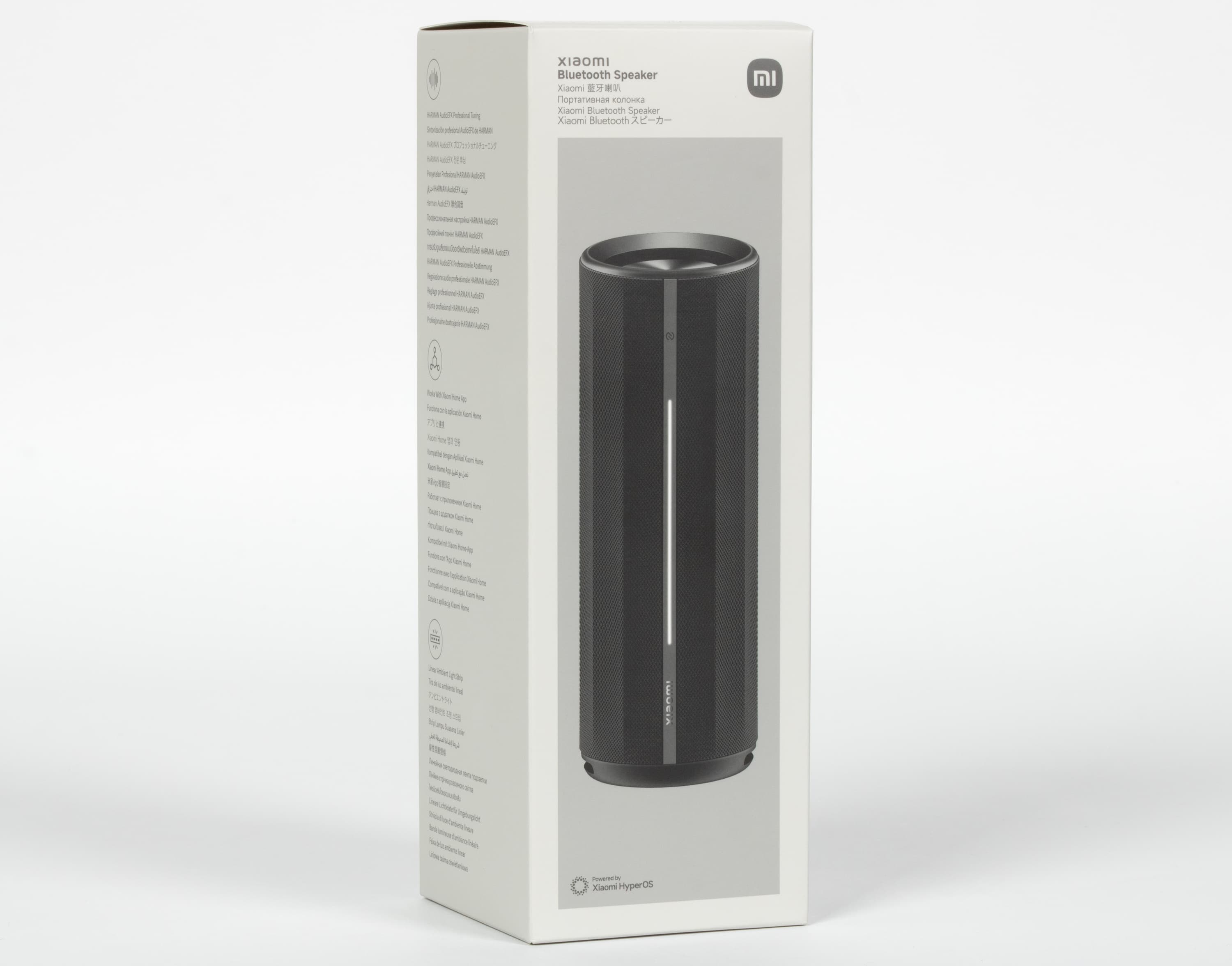И вот, судя по маркетинговым описаниям, перед нами как раз такое устройство — Xiaomi Bluetooth Speaker. С оригинальным названием вновь не сложилось: в очередной раз просто «беспроводная колонка Xiaomi». Зато есть номер модели — ASM02G, на него и будем ориентироваться. Формат стандартный — «бочка», но это тот случай, когда решающими становятся детали и исполнение. Несмотря на классический форм-фактор, дизайн получился одновременно лаконичным и самобытным. Но самое интересное, конечно же, звук. Производитель заявляет о профессиональной настройке Harman Audio REFX, системе из двух разнонаправленных твитеров, широкополосного динамика и двух пассивных излучателей для усиления баса.