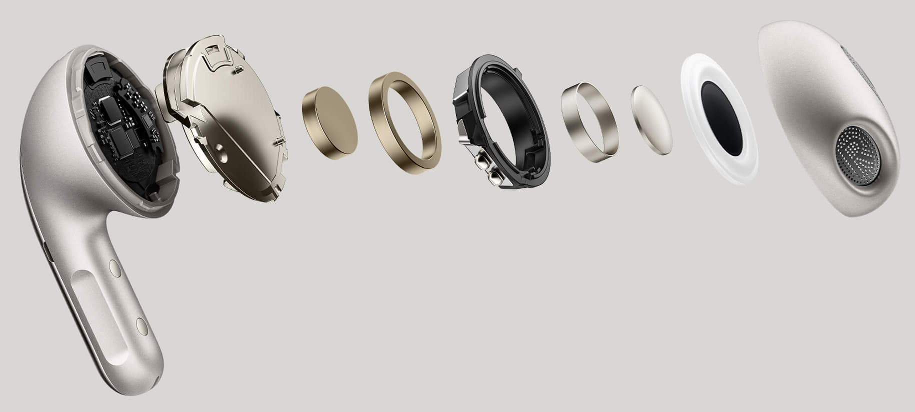 Центральная особенность Buds 5 — конечно же, система обработки звука Harman AudioEFX, которая вкупе с динамиками диаметром 11 мм и продуманной внутренней камерой наушников обещает эффектное звучание. Форма выбрана близкая к классической, при этом вслед за инженерами из Купертино специалисты Xiaomi сообщают об объемных исследованиях строения ушных раковин пользователей, позволивших добиться надежной и удобной посадки. Микрофоны для голосовой связи оснащены собственной «интеллектуальной» системой шумоподавления.